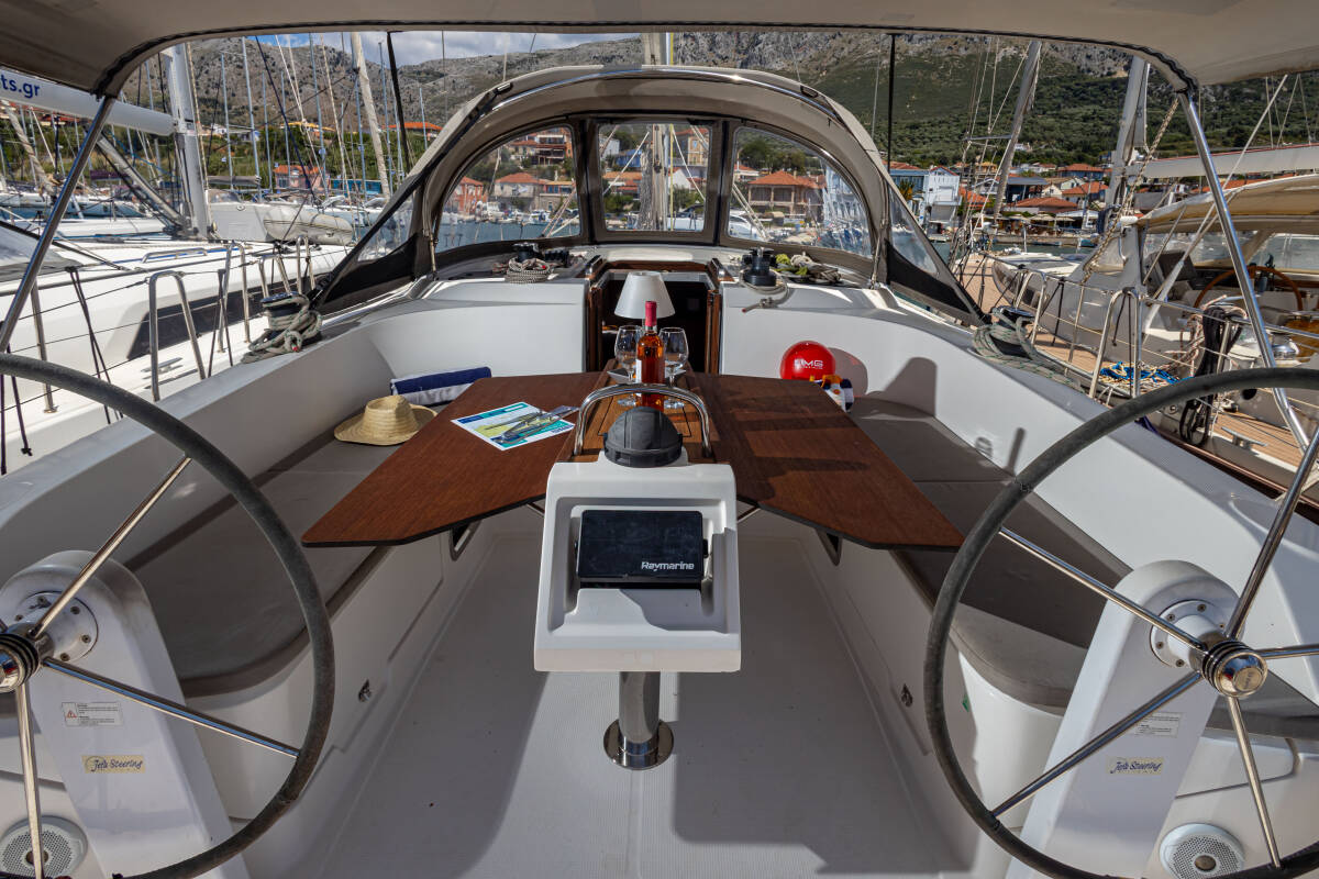 Bavaria Cruiser 46 „Wanderlust“ je vybavena hlavní plachtou a genou, stejně jako Bimini, Autopilot, Sprayhood.