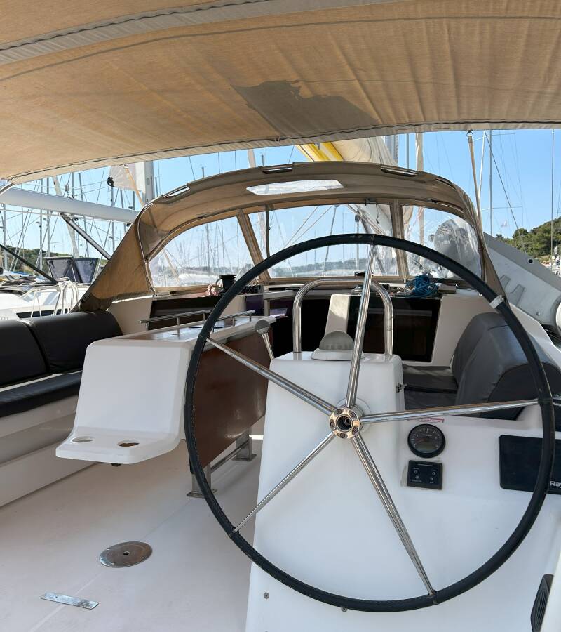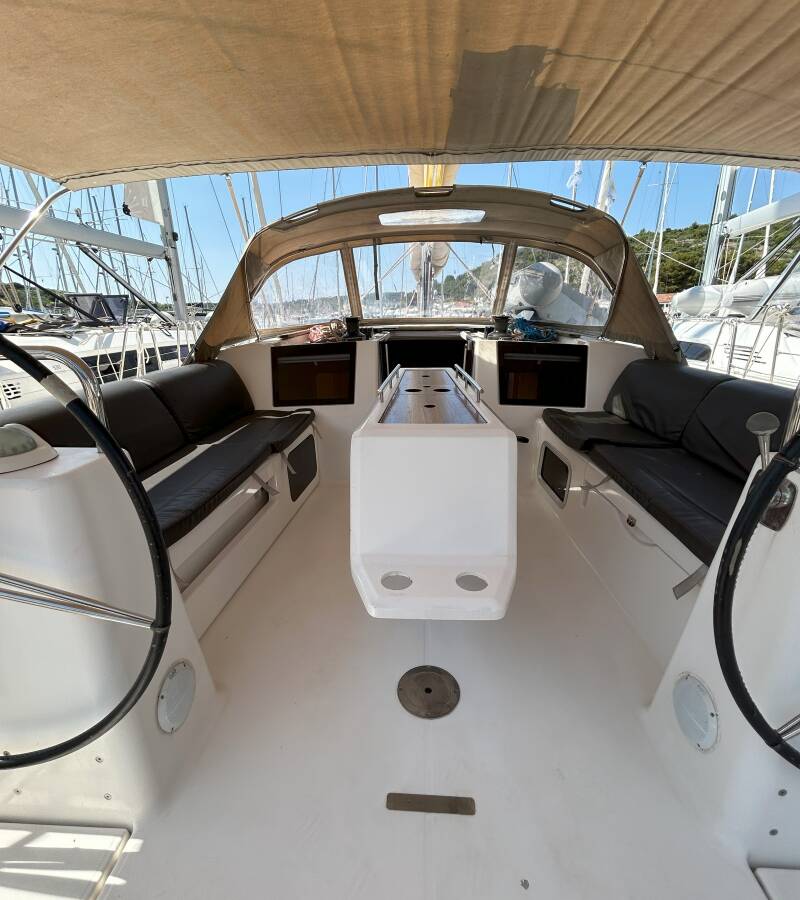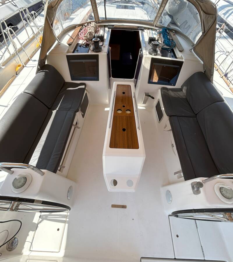 Týková sedadla v kokpitě