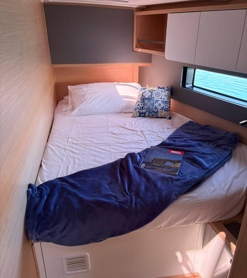 Dufour 48 „Salima“ nabízí zvláštní komfort díky následujícím prvkům vybavení: Bow thruster, Generátor, Klimatizace, Koupací platforma, Invertor, Elektrické WC.