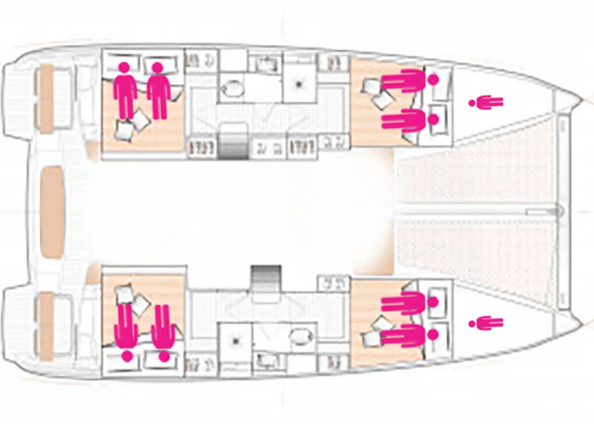 Katamarán Excess 11 „Amare II“, postaveno v roce 2023, je kotveno v Corfu, Gouvia Marina - Řecko. Jachta má 4 + 1 kajut, může ubytovat 8 + 1 + 1 osob a má 2 toalet/sprch.