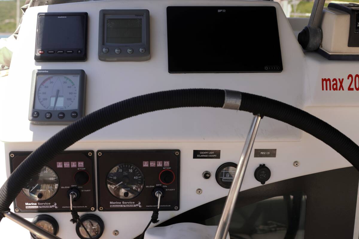 Lagoon 380 S2 „Relax“ je vybavena hlavní plachtou a genou, stejně jako Bimini, Autopilot, Sprayhood, Topení.
