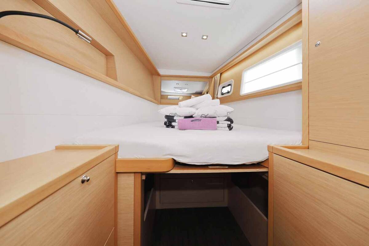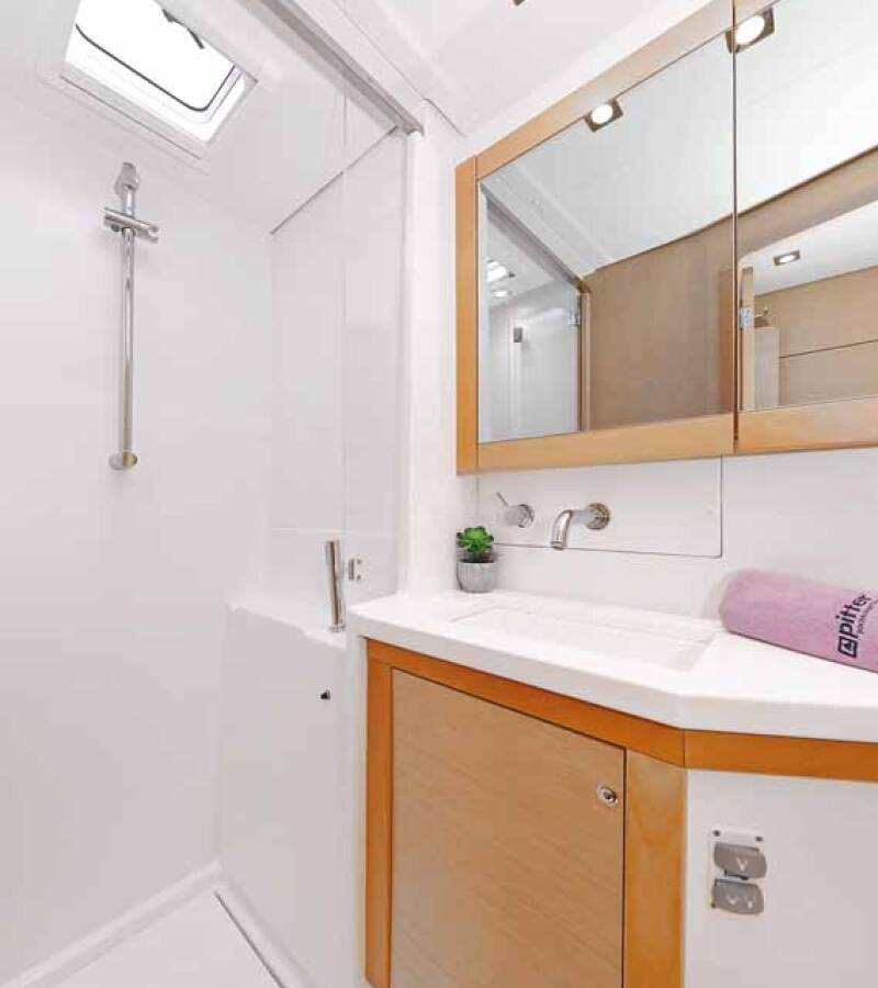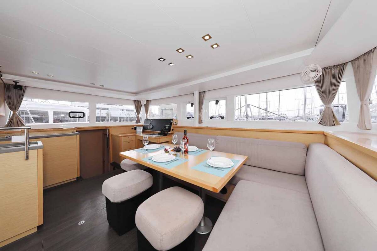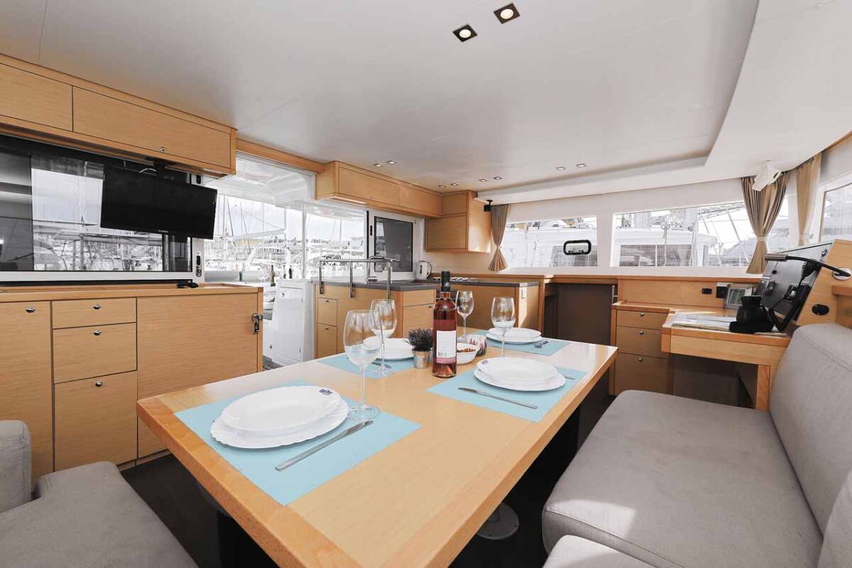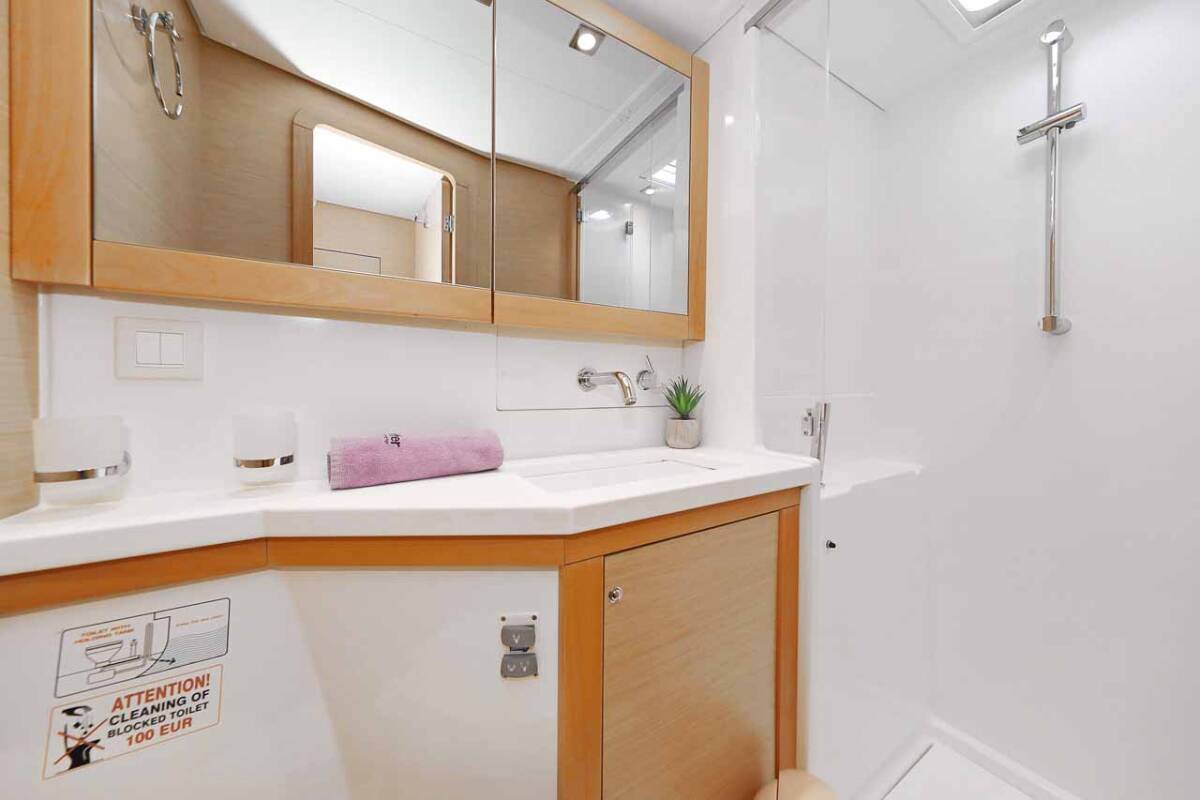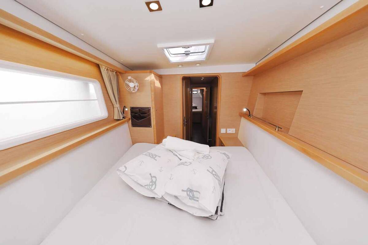 Lagoon 450 F „Stella“ nabízí zvláštní komfort díky následujícím prvkům vybavení: Polštáře do kokpitu, Invertor, Elektrické WC, Solární panely.