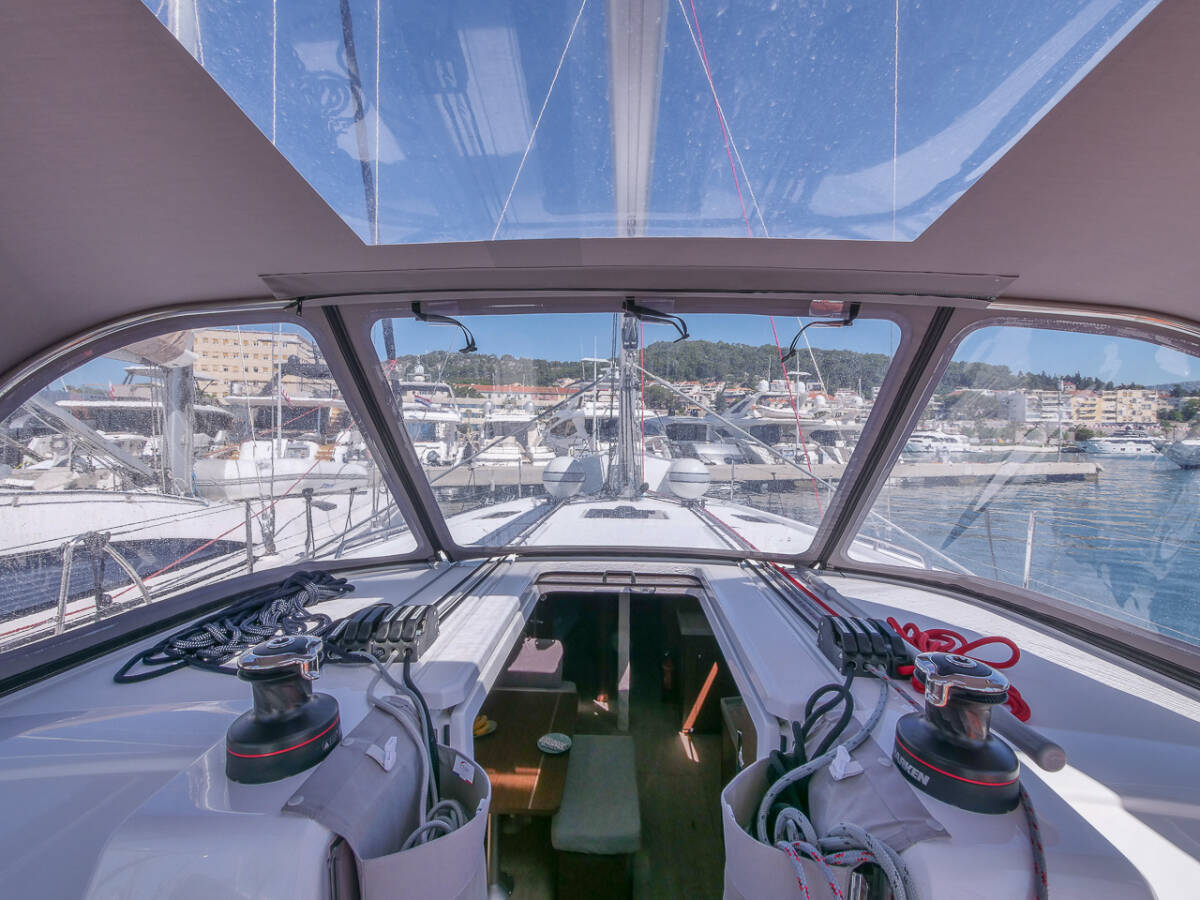 Oceanis 40.1 „Mamma Mia“ je vybavena hlavní plachtou a genou, stejně jako Bimini, Autopilot, Sprayhood, Topení, GPS mapový plotter - kokpit.