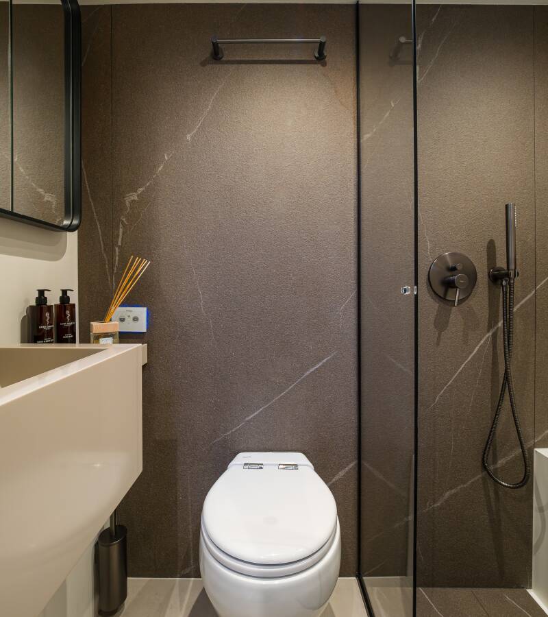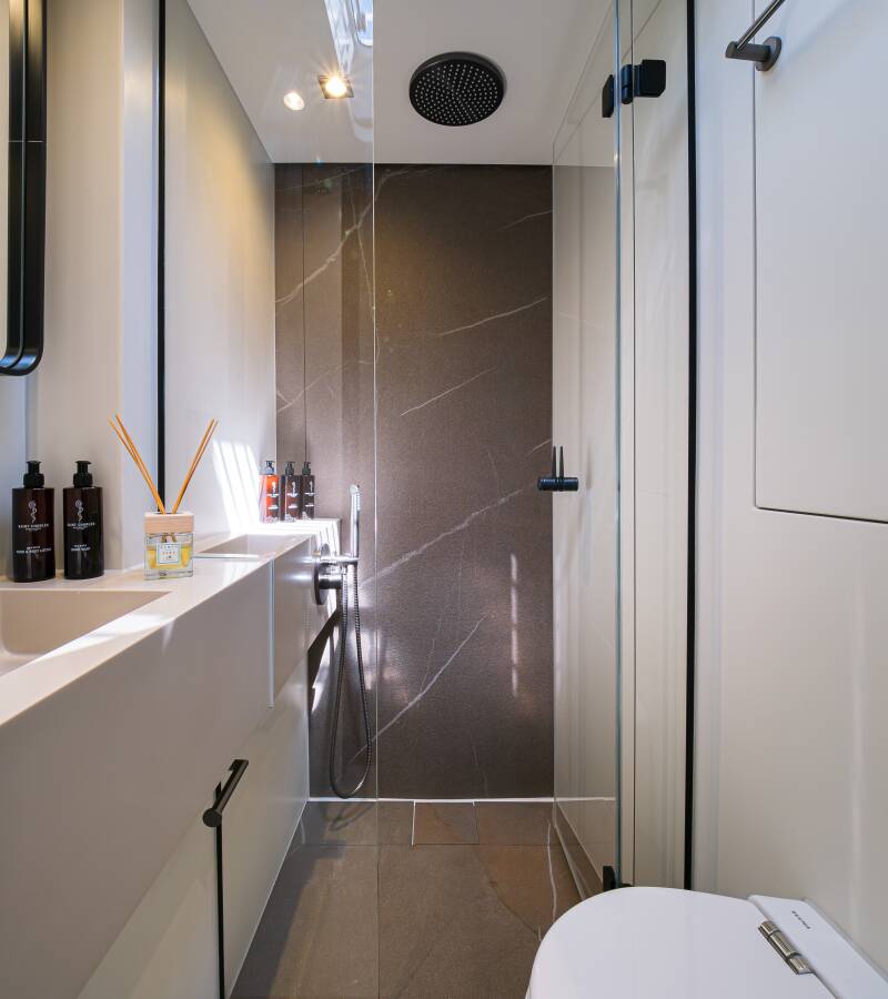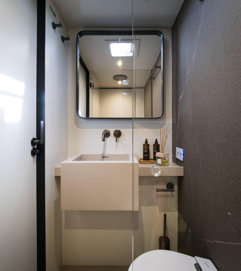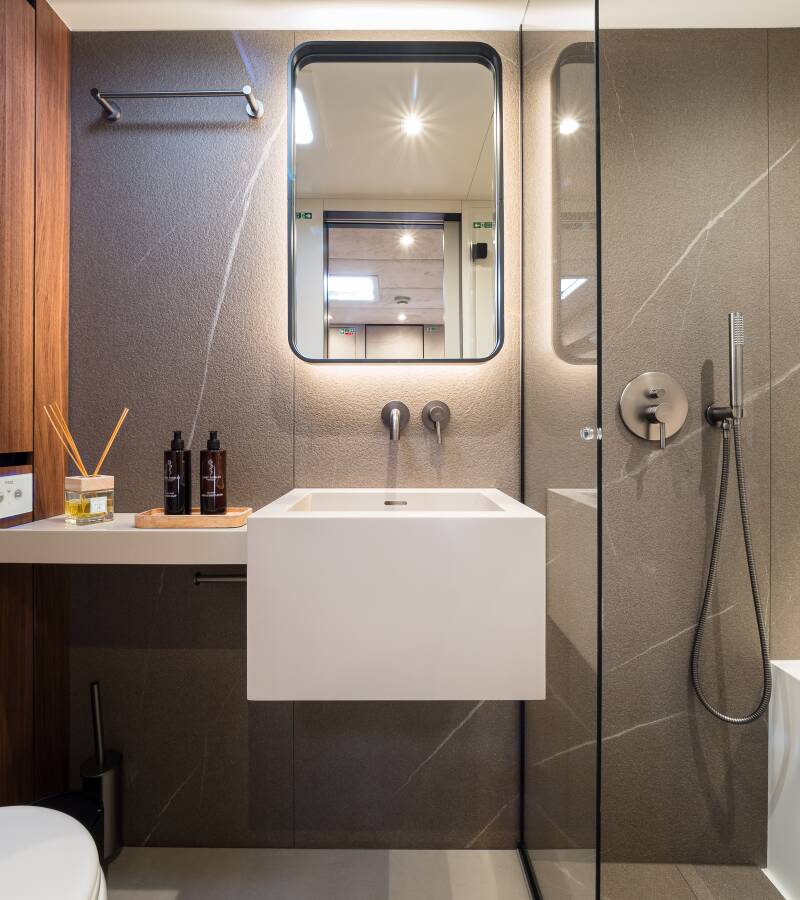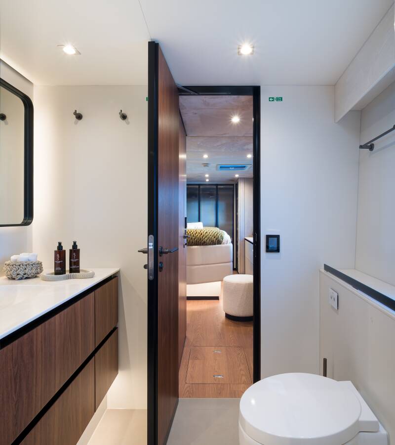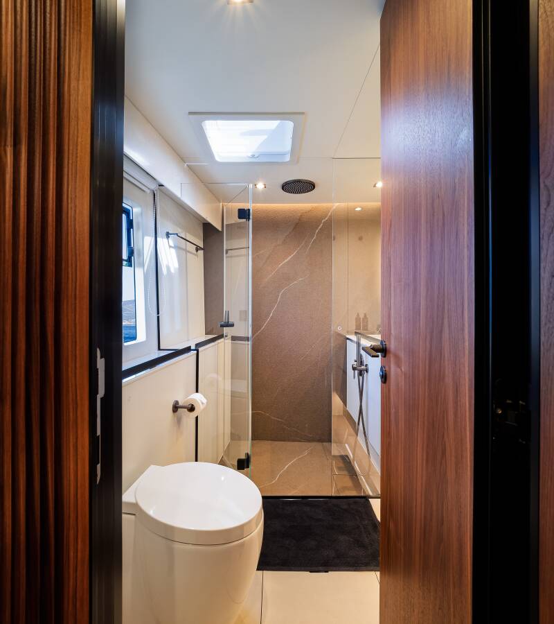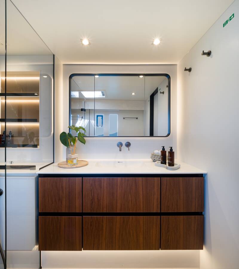 Stylový akcent zajišťují Watermaker – Odsolovač vody, Týková paluba.