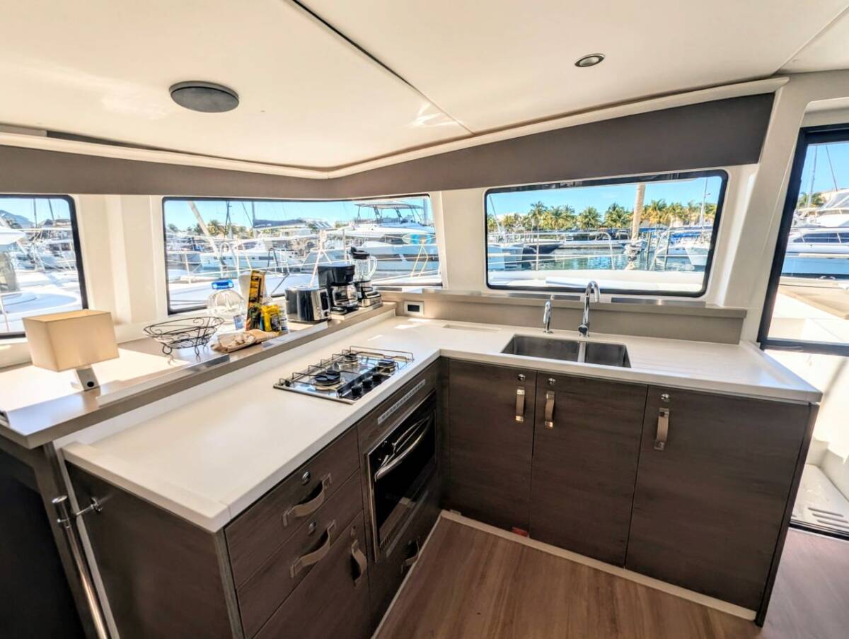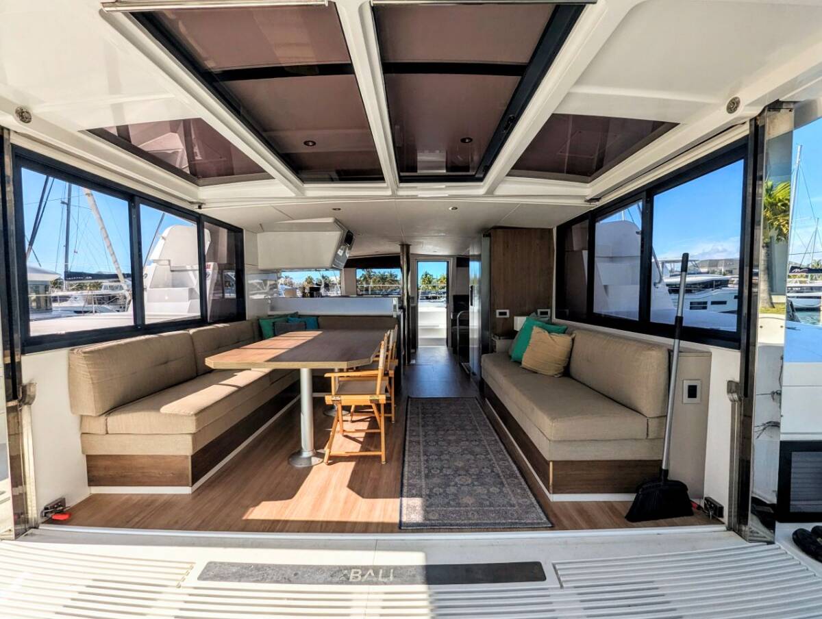 The Catamaran Bali 4.4 „SAGA“, built in 2022, is moored in Nassau, Palm Cay Marina - Bahamas. The yacht has 4 + 2 cabins, can accomodate 8 + 2 persons and has 4 toilets/showers.