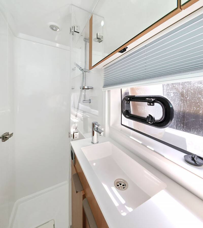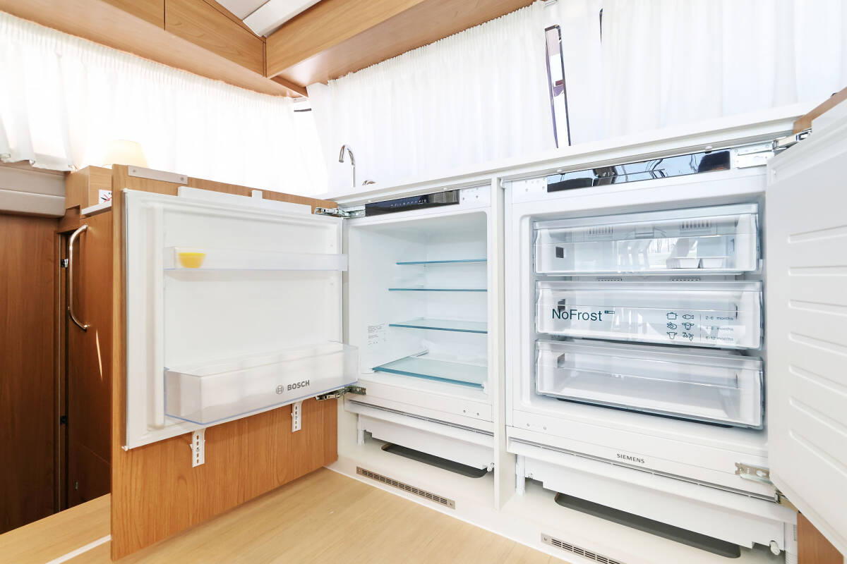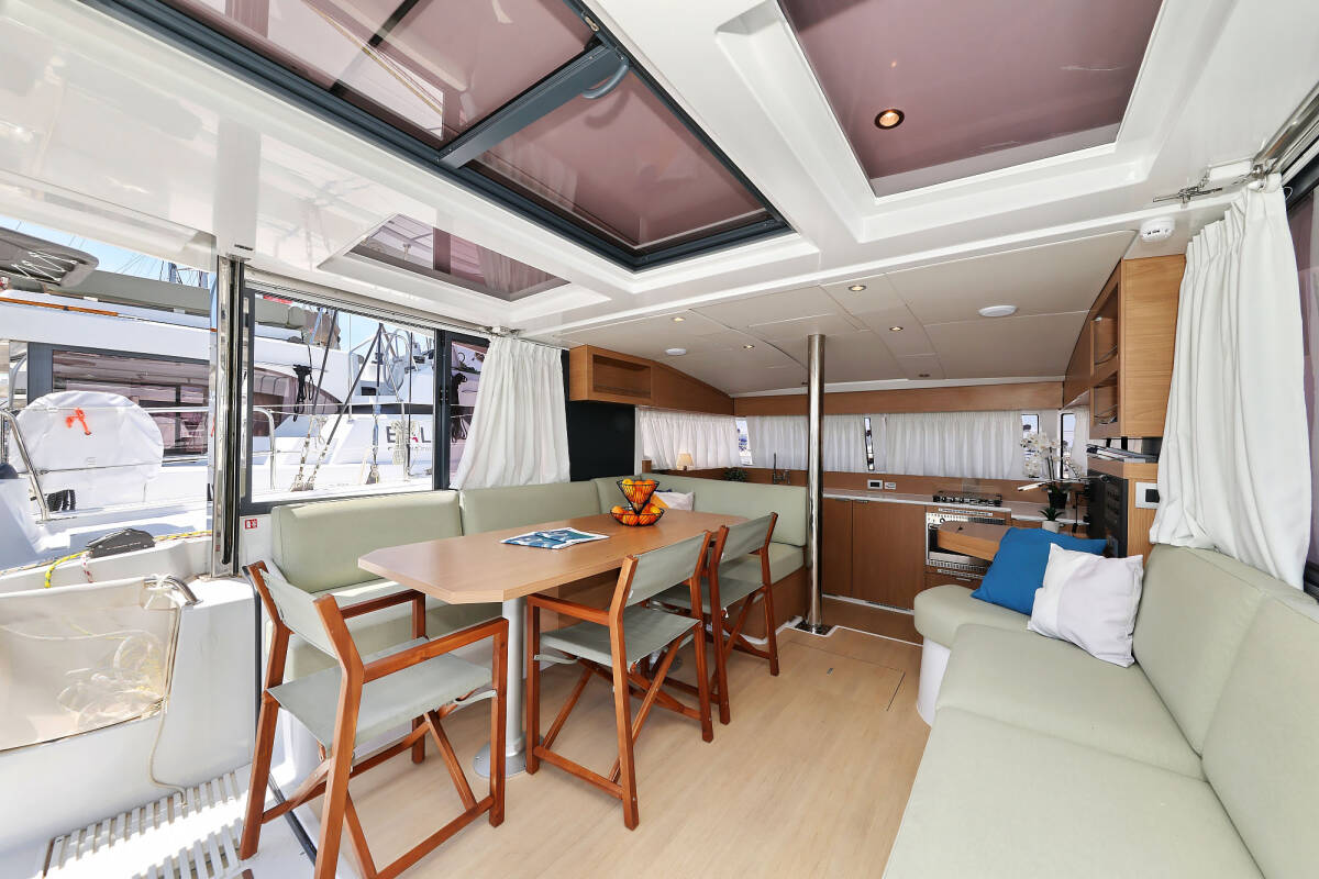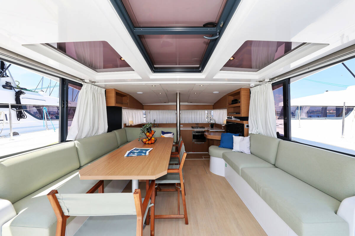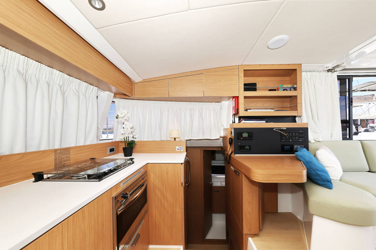 The Bali Catsmart „Aventurier“ offers special comfort with the following equipment features: Freezer, Cockpit cushions, Bathing platform, Inverter, Solar panels.