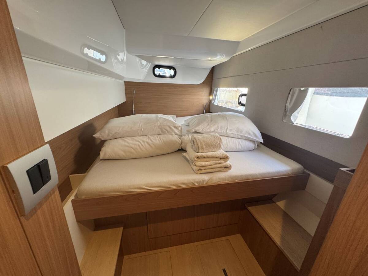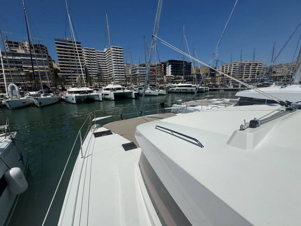 The Catamaran Bali Catsmart „Voyager“, built in 2024, is moored in Palma de Mallorca, Marina Naviera Balear - Spain. The yacht has 4 + 2 cabins, can accomodate 8 + 2 persons and has 2 toilets/showers.