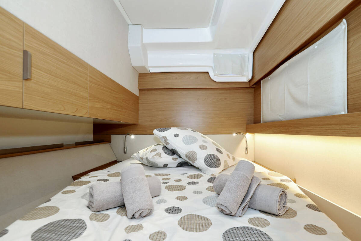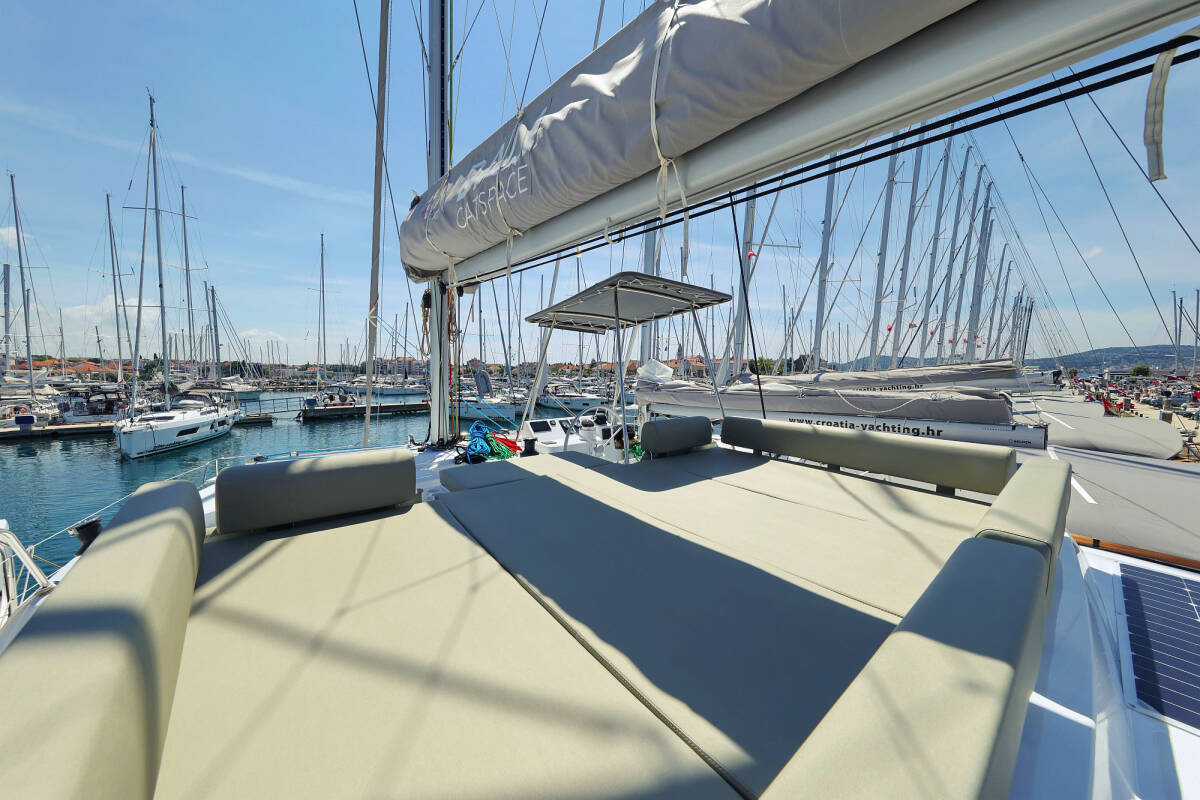 The Catamaran Bali Catspace „Baycat“, built in 2025, is moored in Marina Kornati, Biograd - Croatia. The yacht has 4 cabins, can accomodate 8 + 2 persons and has 4 toilets/showers.