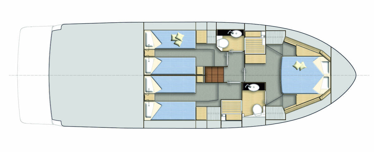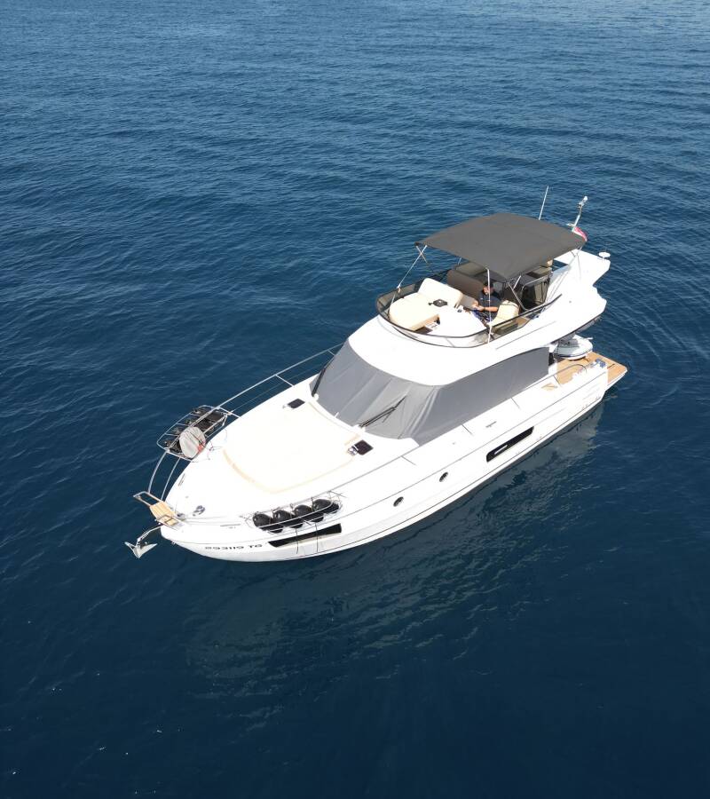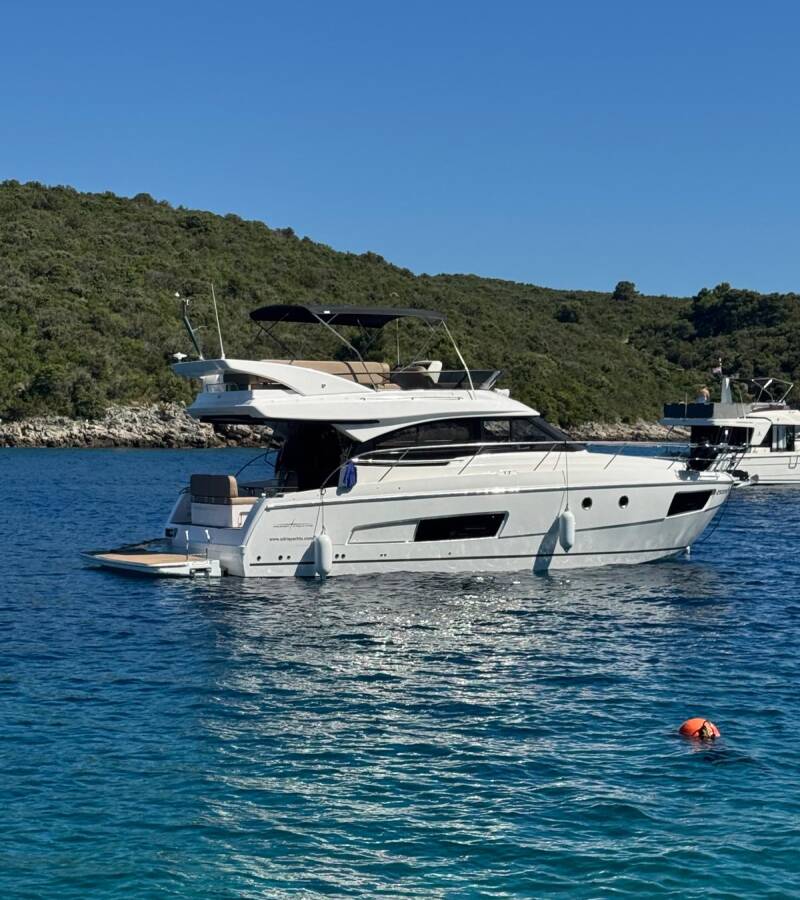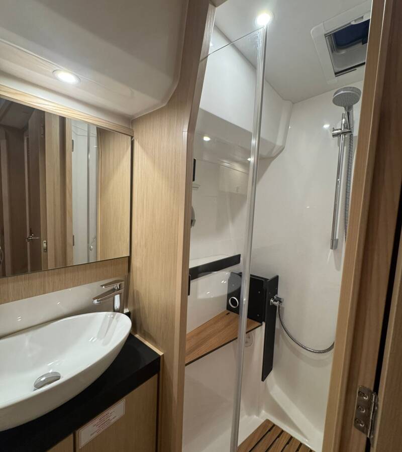 The Bavaria Virtess 420 Fly „Lana“ offers special comfort with the following equipment features: Bow thruster, Generator, Air Conditioning, Freezer, Bathing platform, Electric toilet.