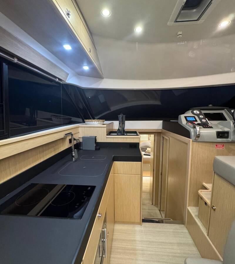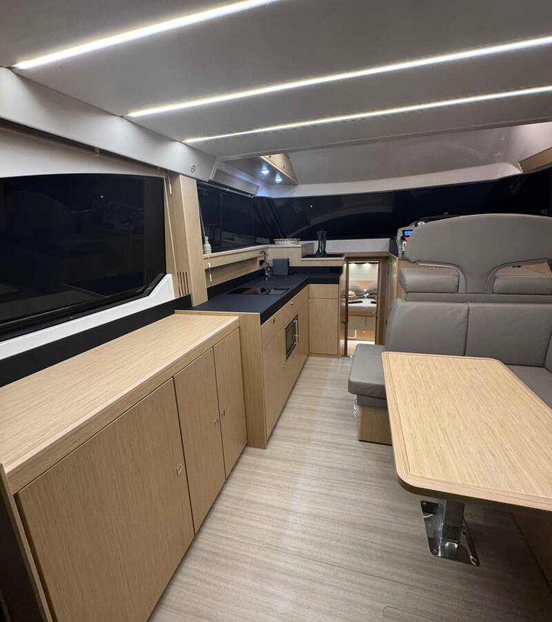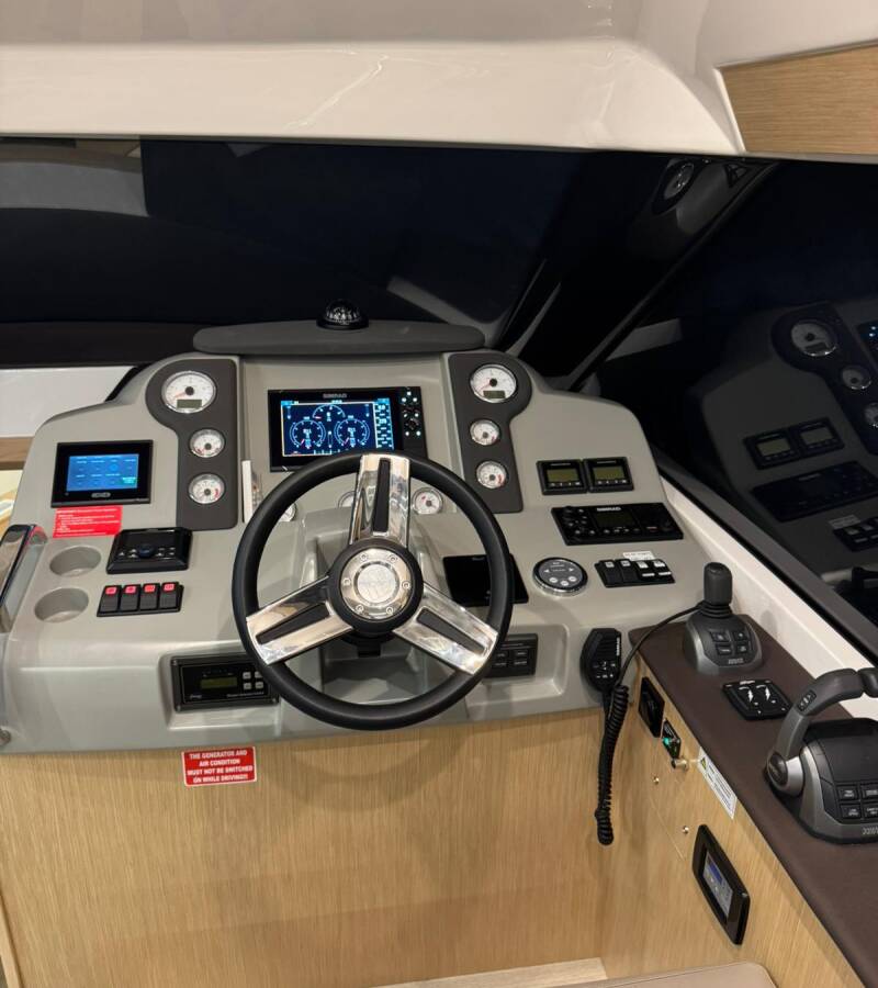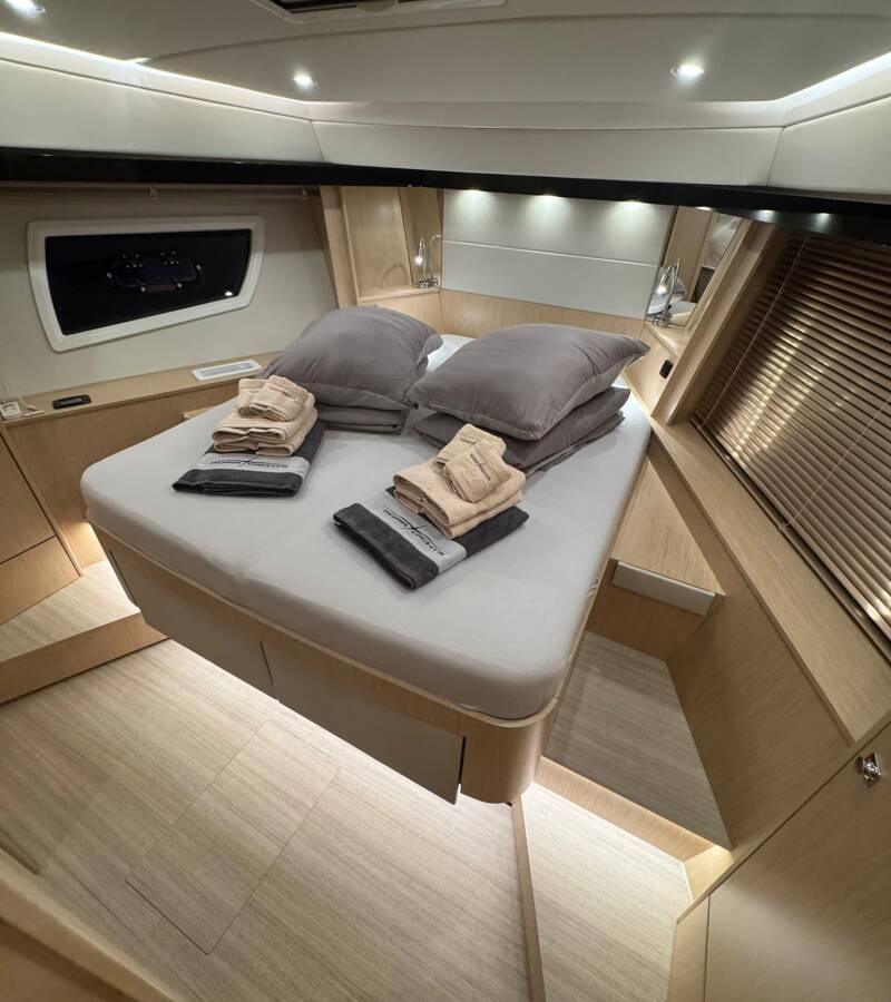 The Bavaria Virtess 420 Fly is a luxurious motor yacht from the German manufacturer Bavaria Yachts. With a length of approximately 13.93 meters and a beam of 4.21 meters, it offers generous space and high comfort for extended stays on the water. The Fly bridge of the Bavaria Virtess is the largest in its class <B>Max. number of persons for daily charter is 12</B>