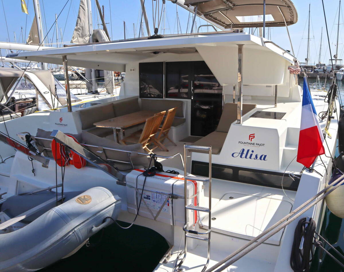 The Fountaine Pajot Lucia 40 „Alisa“ offers special comfort with the following equipment features: Freezer, Cockpit cushions, Inverter, Solar panels.