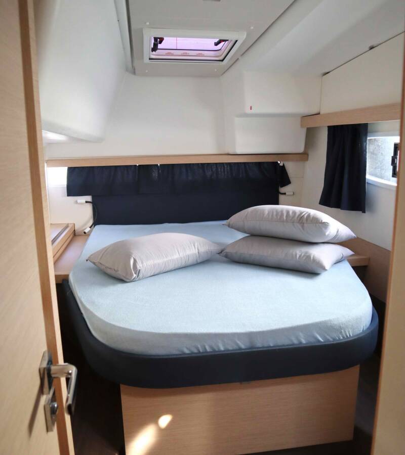 The Fountaine Pajot Lucia 40 „Alisa“ is equipped with a mainsail and a genoa as well as a Bimini top, Autopilot, Sprayhood.