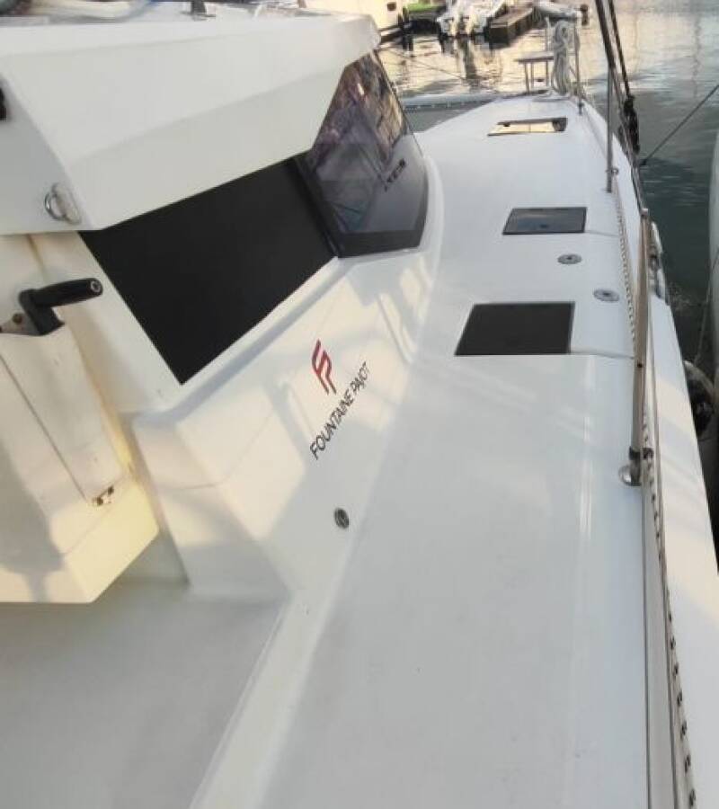 The Fountaine Pajot Lucia 40 „HYLIA “ offers special comfort with the following equipment features: Cockpit cushions, Inverter, Solar panels.