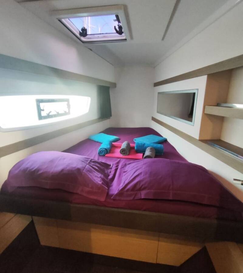 The Fountaine Pajot Lucia 40 „HYLIA “ is equipped with a mainsail and a genoa as well as a Bimini top, Autopilot.