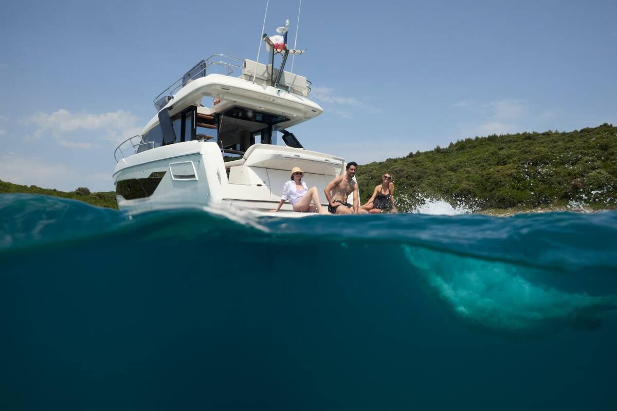 The Prestige F4.3 „Mr. 77“ offers special comfort with the following equipment features: Bow thruster, Generator, Air Conditioning, Bathing platform, Inverter, Electric toilet.