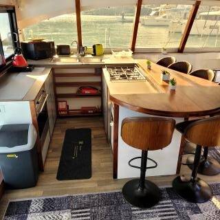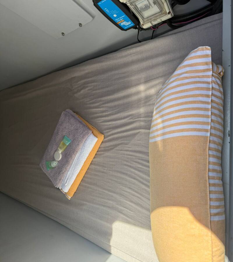 The Sea-Tribe DH550 „Valerie“ offers special comfort with the following equipment features: Air Conditioning, Freezer, Inverter, Electric toilet, Solar panels.
