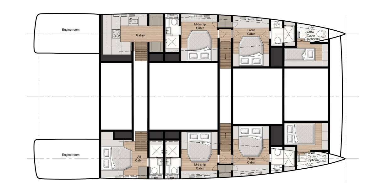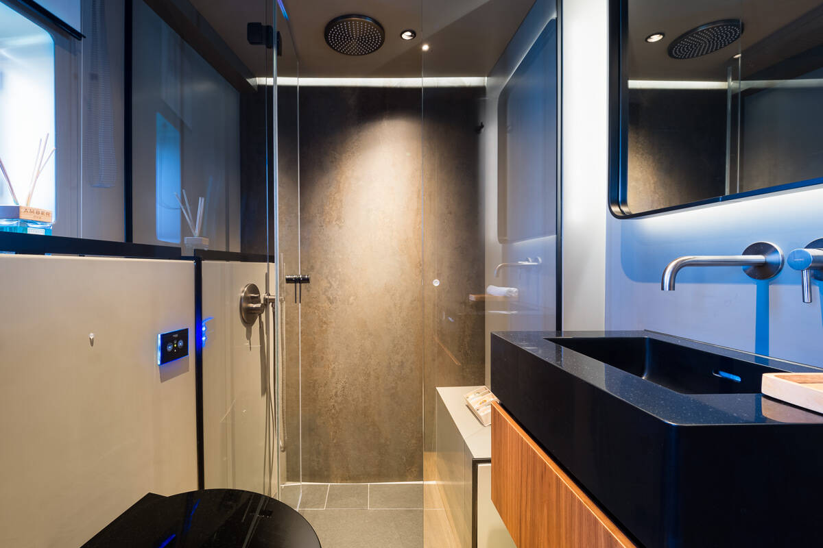 The Sunreef 70 Power „Amber One“ offers special comfort with the following equipment features: Generator, Air Conditioning, Washing machine, Inverter, Dishwasher.