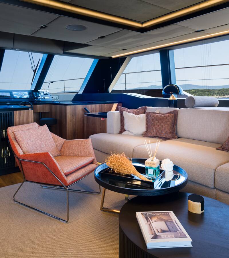The Sunreef 70 Power „Amber One“ is equipped with a Autopilot, Sprayhood.