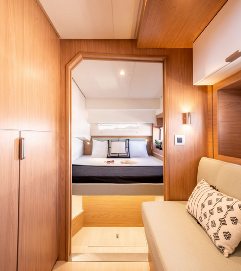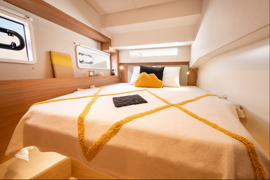 Bali 4.2 „Junior Mary 1“ oferuje niezwykły komfort dzięki m.in.: Generator, Klimatyzacja, Inwerter, Toaleta elektryczna, Panele słoneczne.
