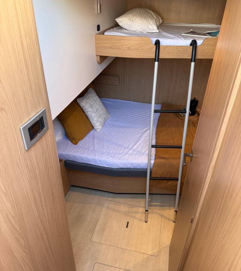 Katamaran Bali 5.2 „Libera“, rok produkcji 2026, jacht ten jest zacumowany w Portorosa - Włochy. Jednostka posiada 6 + 2 kabiny, może pomieścić 14 + 2 persons i posiada 6 + 2 WC.