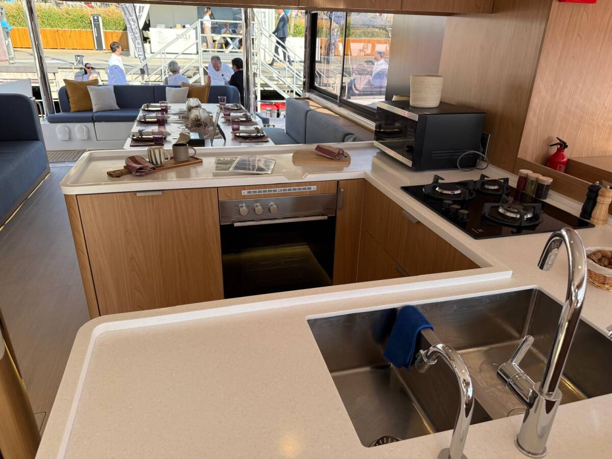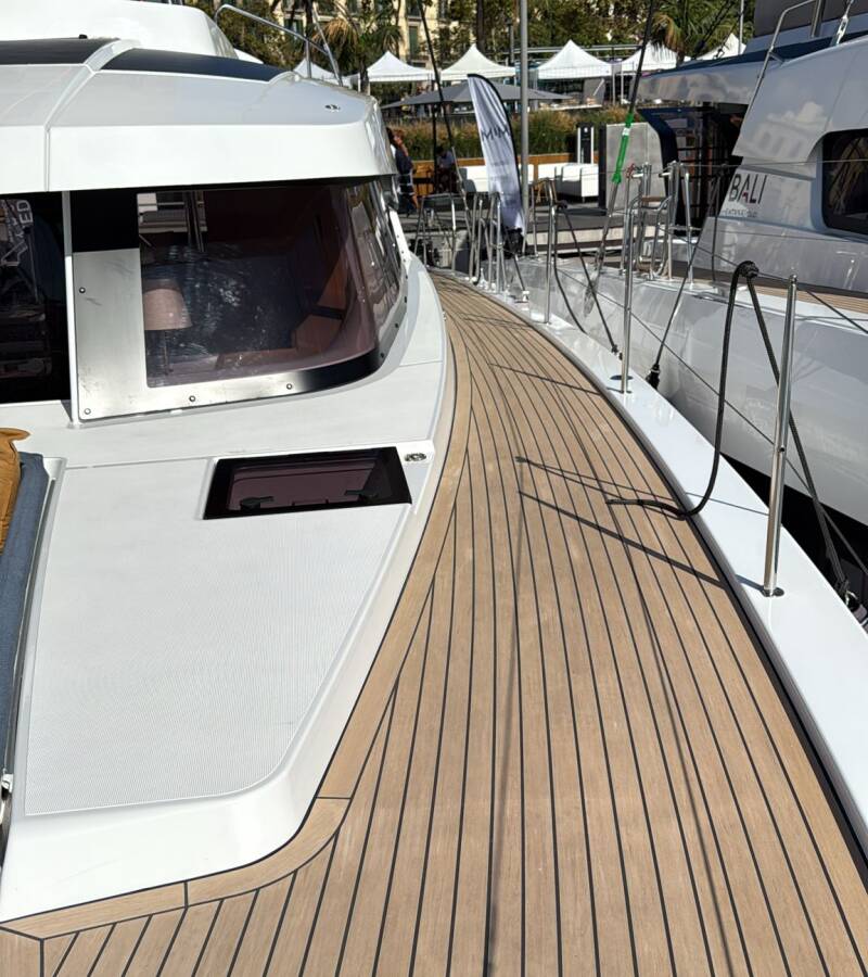 Bali 5.2 „Libera“ oferuje niezwykły komfort dzięki m.in.: Ster strumieniowy, Generator, Klimatyzacja, Poduszki w kokpicie, Zmywarka, Panele słoneczne.