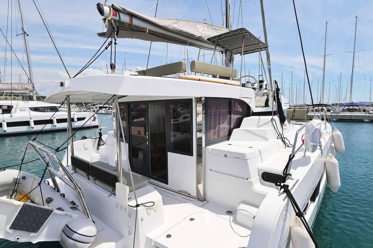 Katamaran Bali Catspace „Esteri“, rok produkcji 2025, jacht ten jest zacumowany w Sukosan, D-Marin Dalmacija Marina - Chorwacja. Jednostka posiada 4 kabiny, może pomieścić 8 + 2 persons i posiada 4 WC.