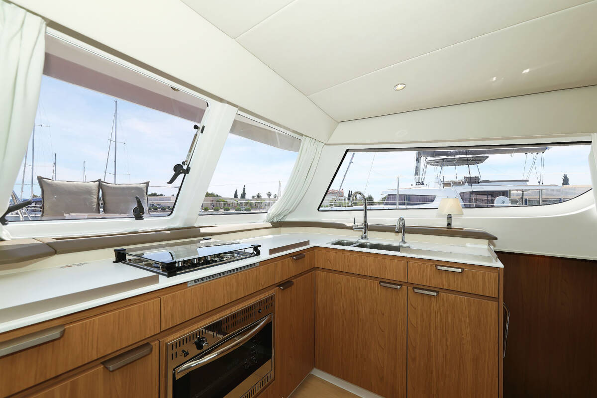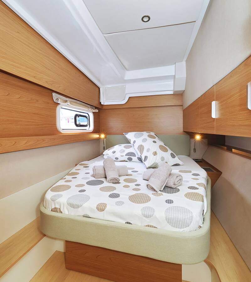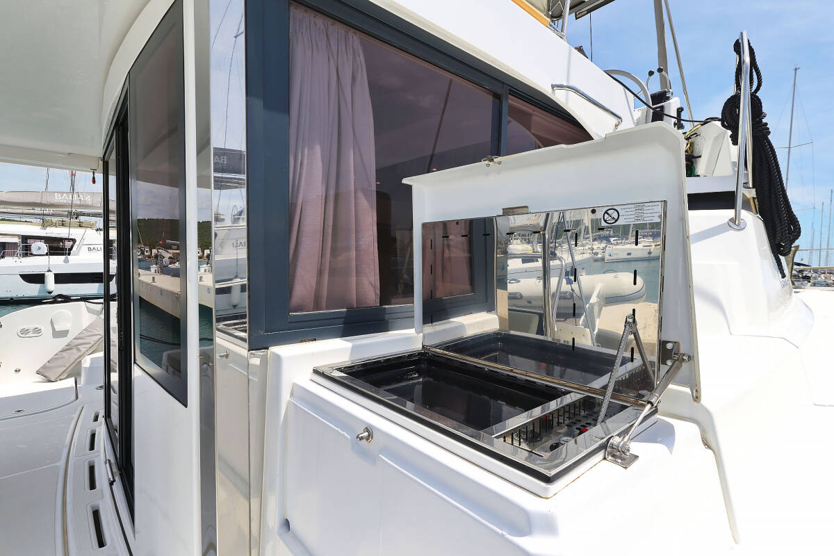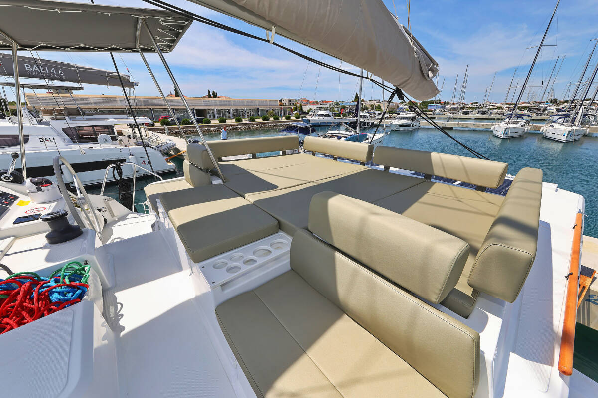 Bali Catspace „Esteri“ oferuje niezwykły komfort dzięki m.in.: Generator, Klimatyzacja, Zamrażarka, Poduszki w kokpicie, Platforma kąpielowa, Inwerter, Toaleta elektryczna, Panele słoneczne.