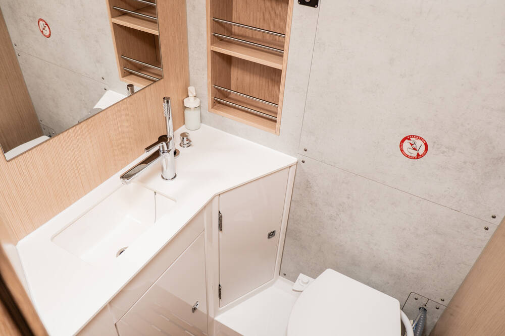 Bavaria C42 „Aruna“ oferuje niezwykły komfort dzięki m.in.: Ster strumieniowy, Poduszki w kokpicie, Platforma kąpielowa, Inwerter, Panele słoneczne.