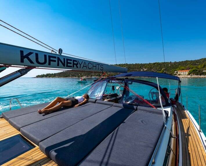 Jacht żaglowy D&D Kufner 54 „Sauvignon Blanc“, rok produkcji 2015, jacht ten jest zacumowany w Sukosan, D-Marin Dalmacija Marina - Chorwacja. Jednostka posiada 5 kabiny, może pomieścić 10 + 2 persons i posiada 4 WC.