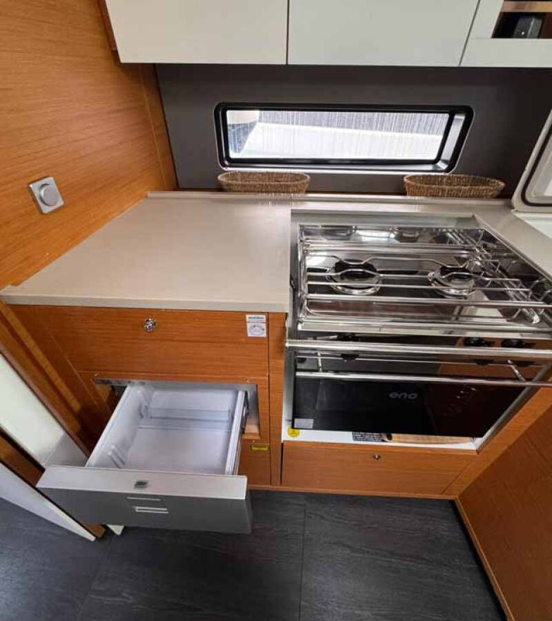 Dufour 41 „Fuego del Viento“ oferuje niezwykły komfort dzięki m.in.: Ster strumieniowy, Poduszki w kokpicie, Inwerter, Panele słoneczne, Grill w kokpicie.