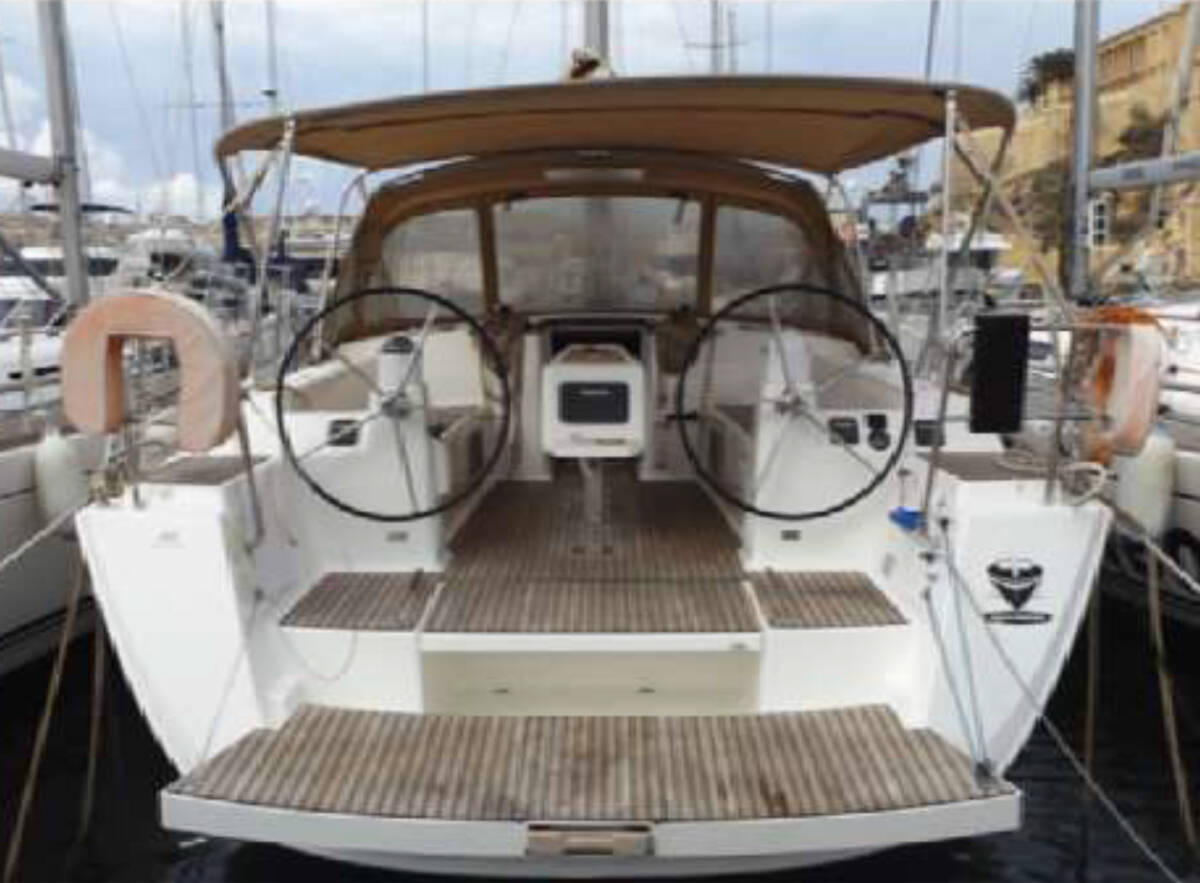 Jacht żaglowy Dufour 450 GL „Oscar Time“, rok produkcji 2014, jacht ten jest zacumowany w Kalkara Marina - Malta. Jednostka posiada 4 kabiny, może pomieścić 8 + 1 persons i posiada 2 WC.