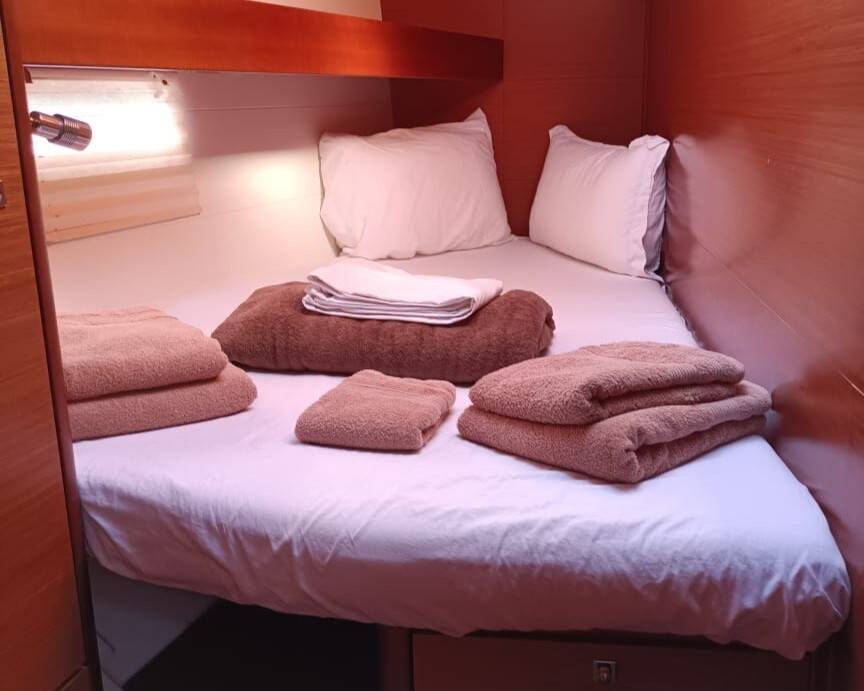 Dufour 460 GL „GRIEG “ jest wyposażony w grot, fok i dodatkowo Daszek bimini, Autopilot, Szprycbuda, Ogrzewanie.