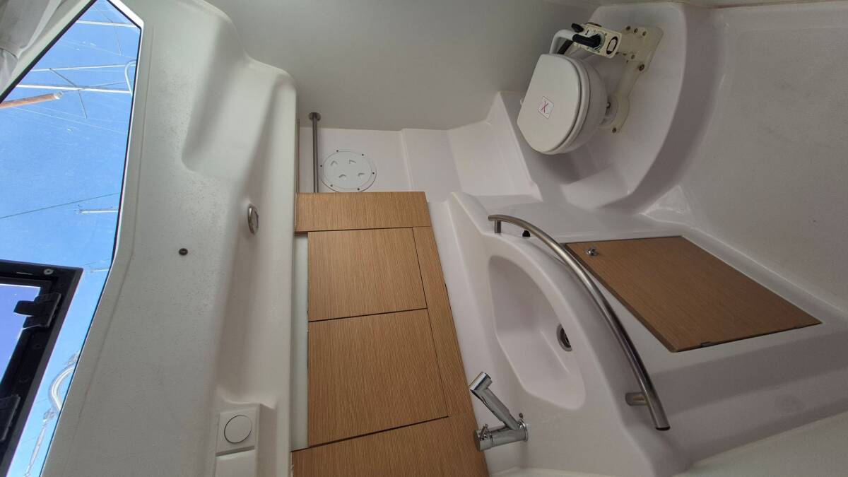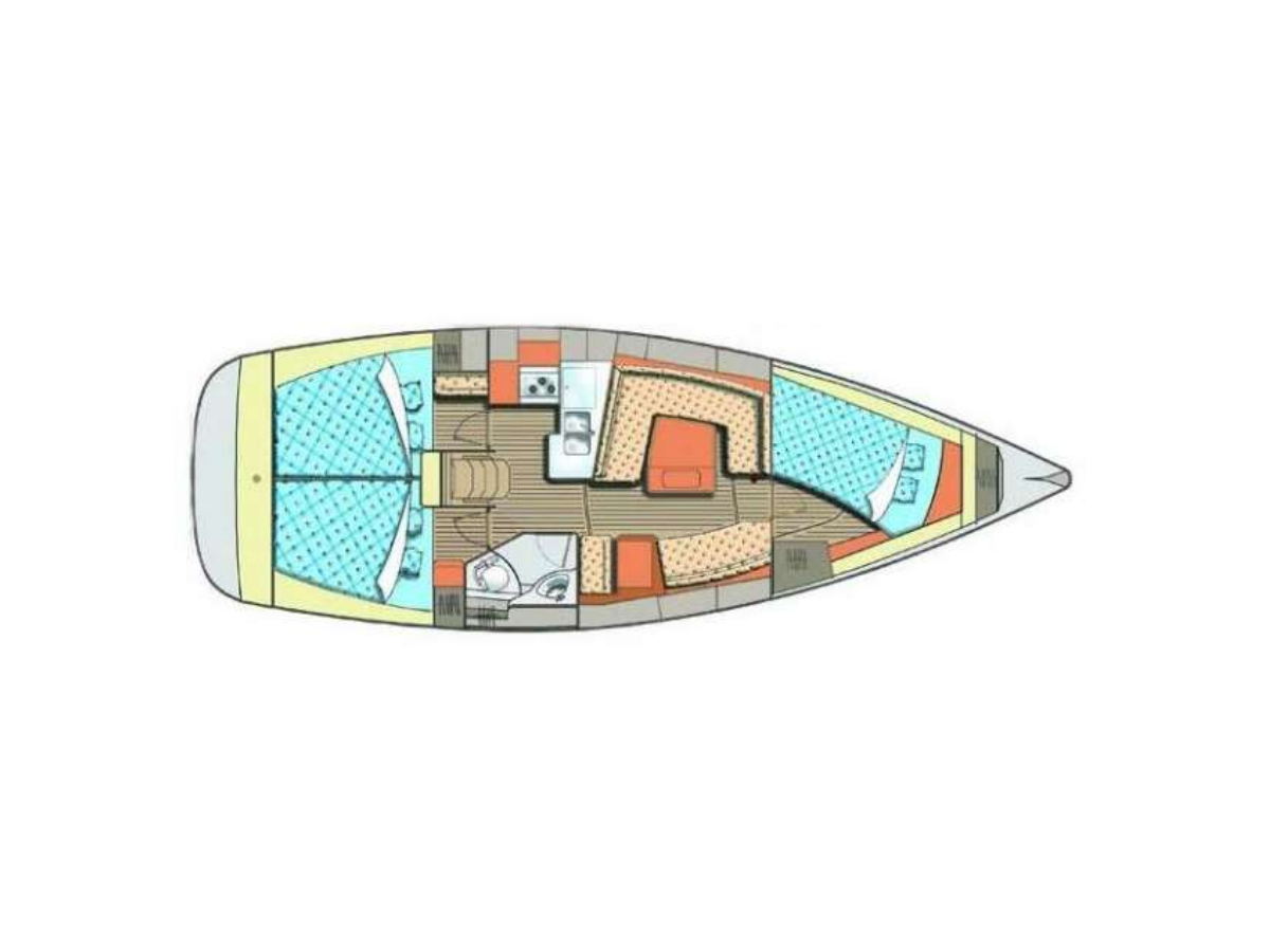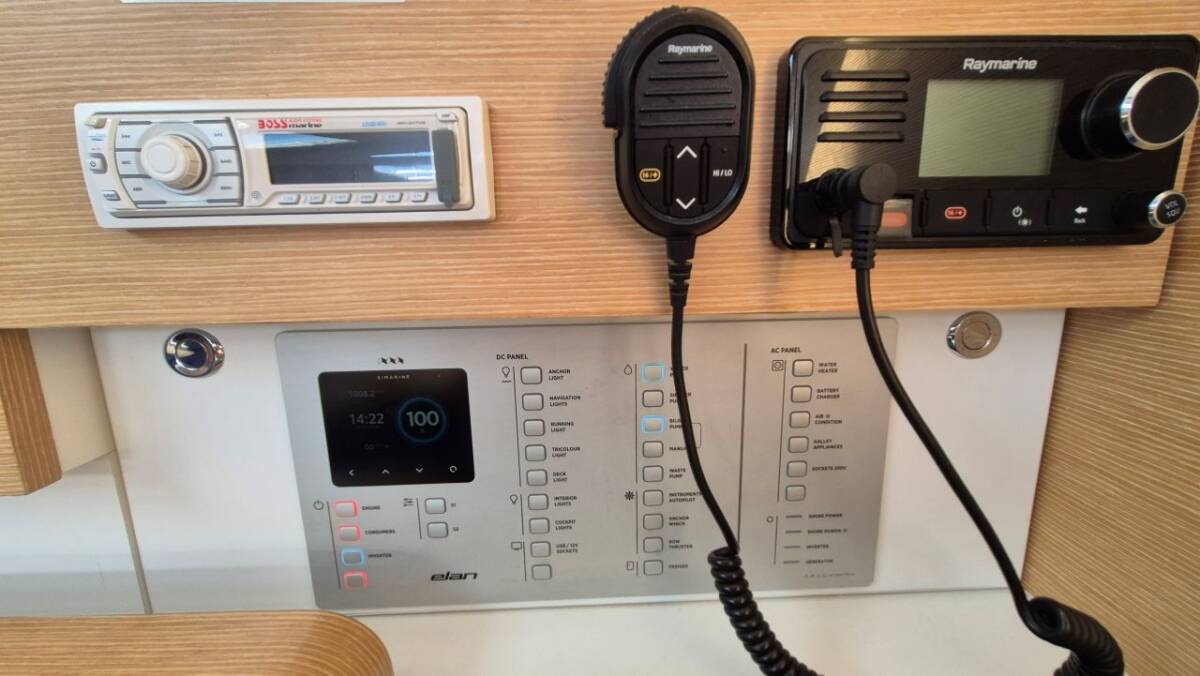Elan Impression 40 „Shamal“ jest wyposażony w grot, fok i dodatkowo Daszek bimini, Autopilot, Szprycbuda, Ogrzewanie, Ploter map GPS - kokpit.