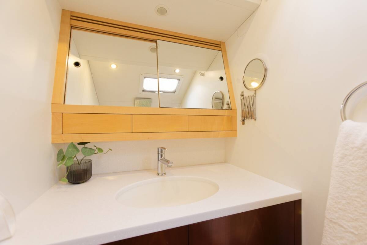 Garcia 72.2 „Makay“ oferuje niezwykły komfort dzięki m.in.: Ster strumieniowy, Generator, Klimatyzacja, Zamrażarka, Pralka, Platforma kąpielowa, Inwerter, Zmywarka, Panele słoneczne.