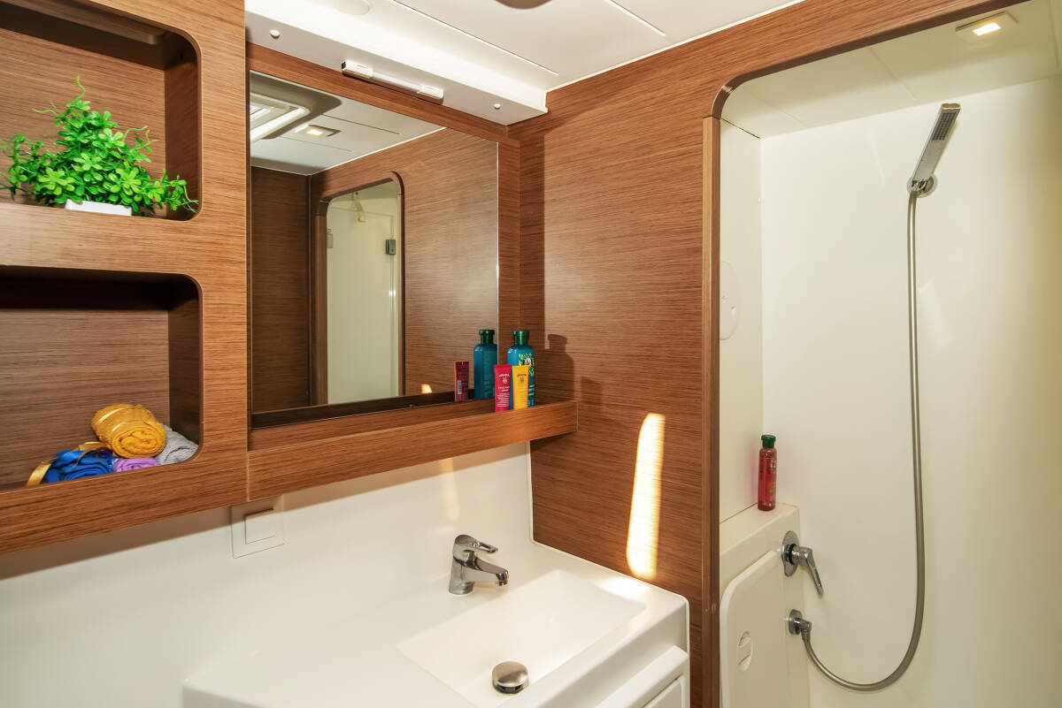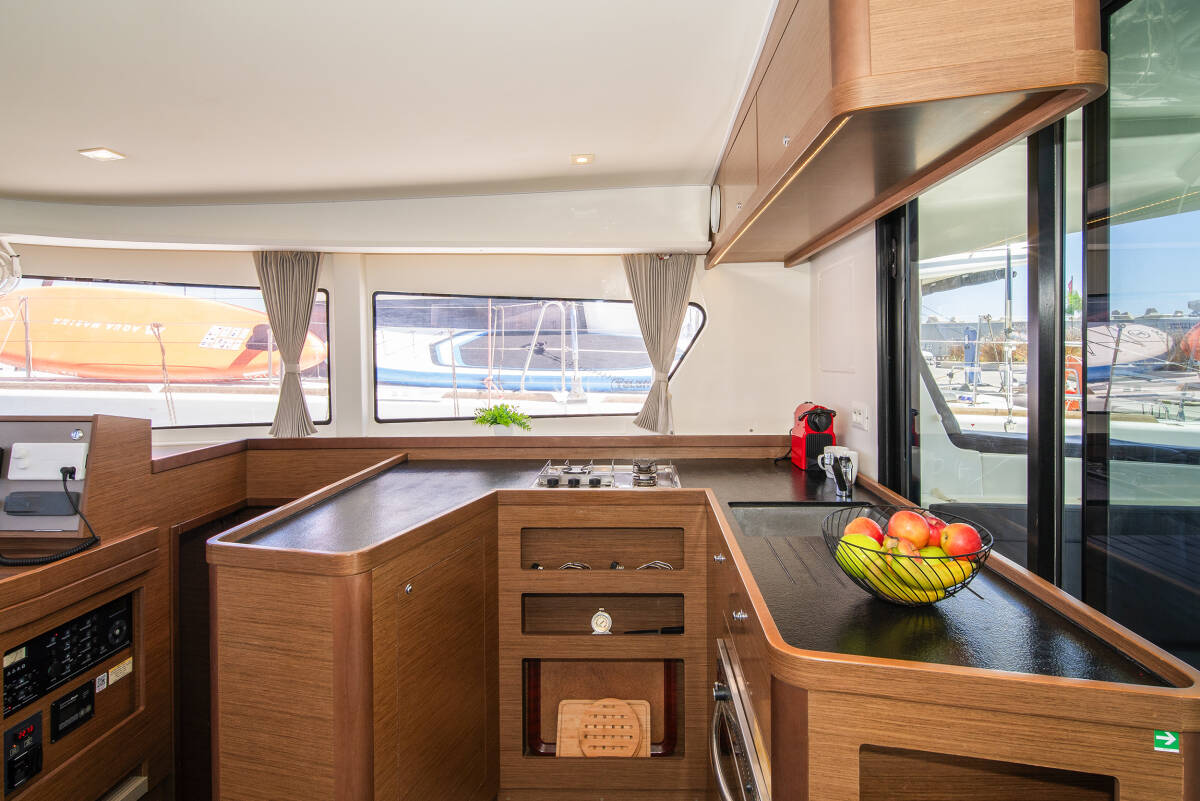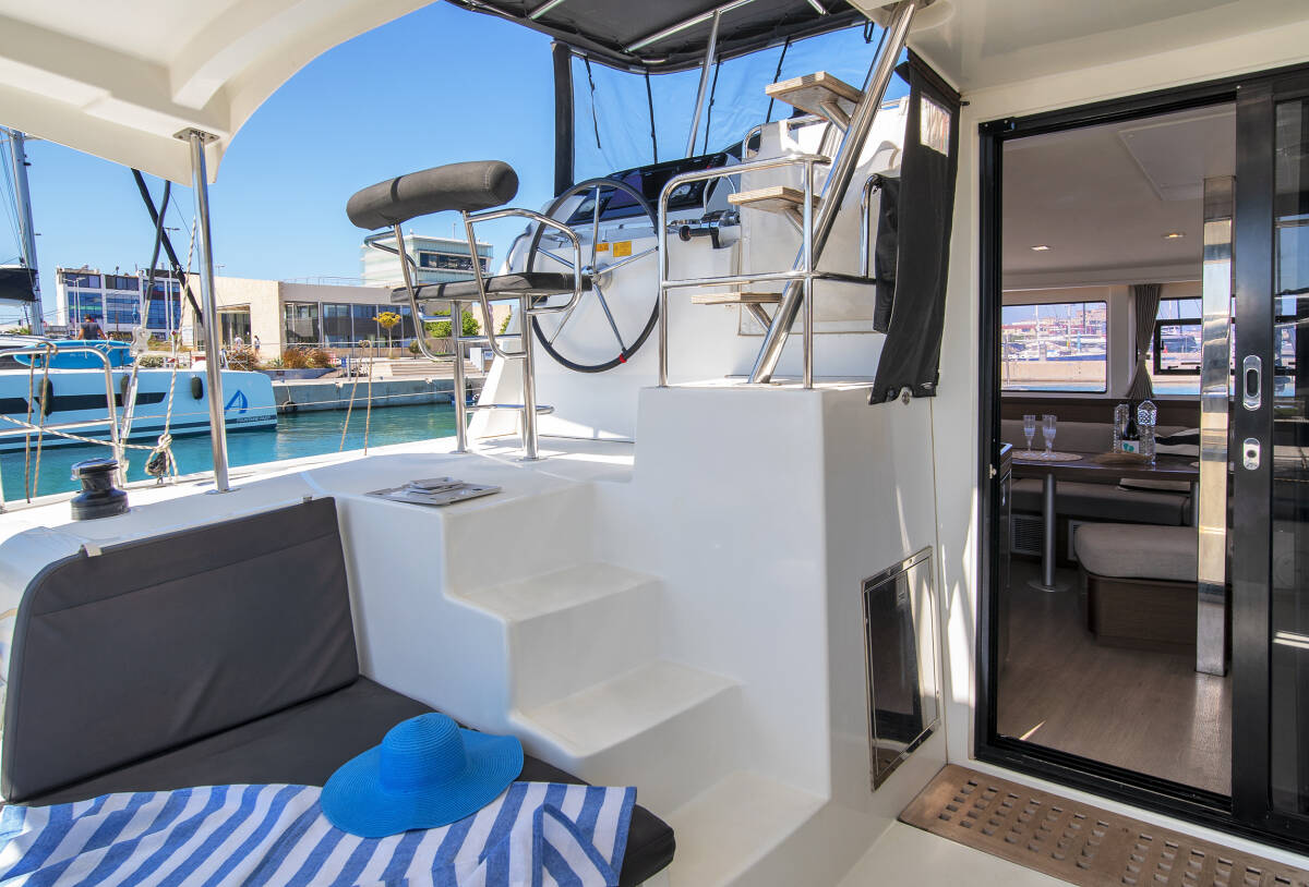 Lagoon 42 „Ionas“ oferuje niezwykły komfort dzięki m.in.: Generator, Klimatyzacja, Poduszki w kokpicie, Toaleta elektryczna, Panele słoneczne.