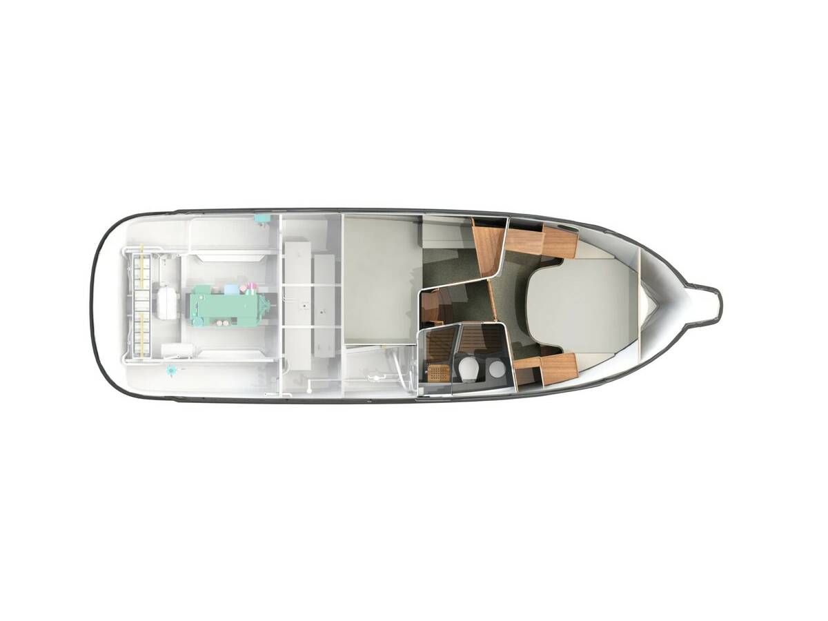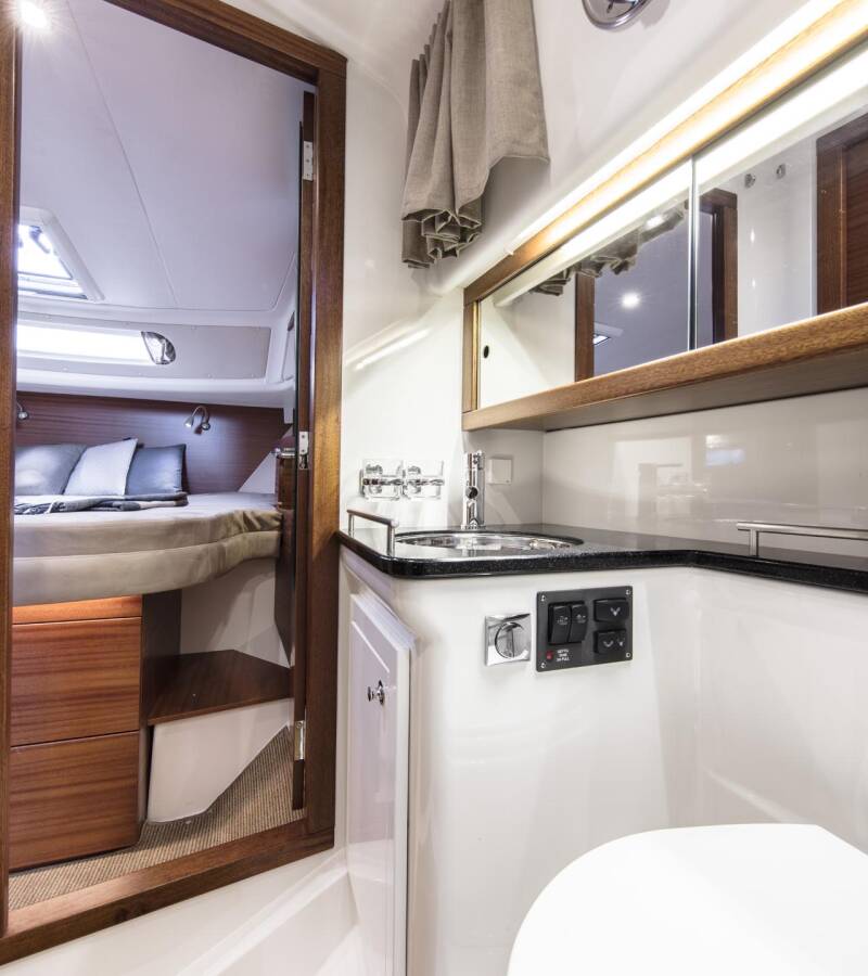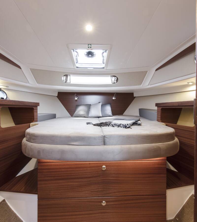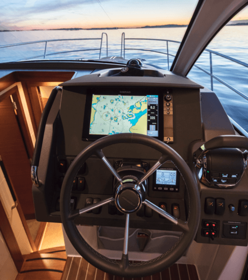 Nimbus 365 Coupe „Fourlux“ oferuje niezwykły komfort dzięki m.in.: Ster strumieniowy, Poduszki w kokpicie, Toaleta elektryczna.