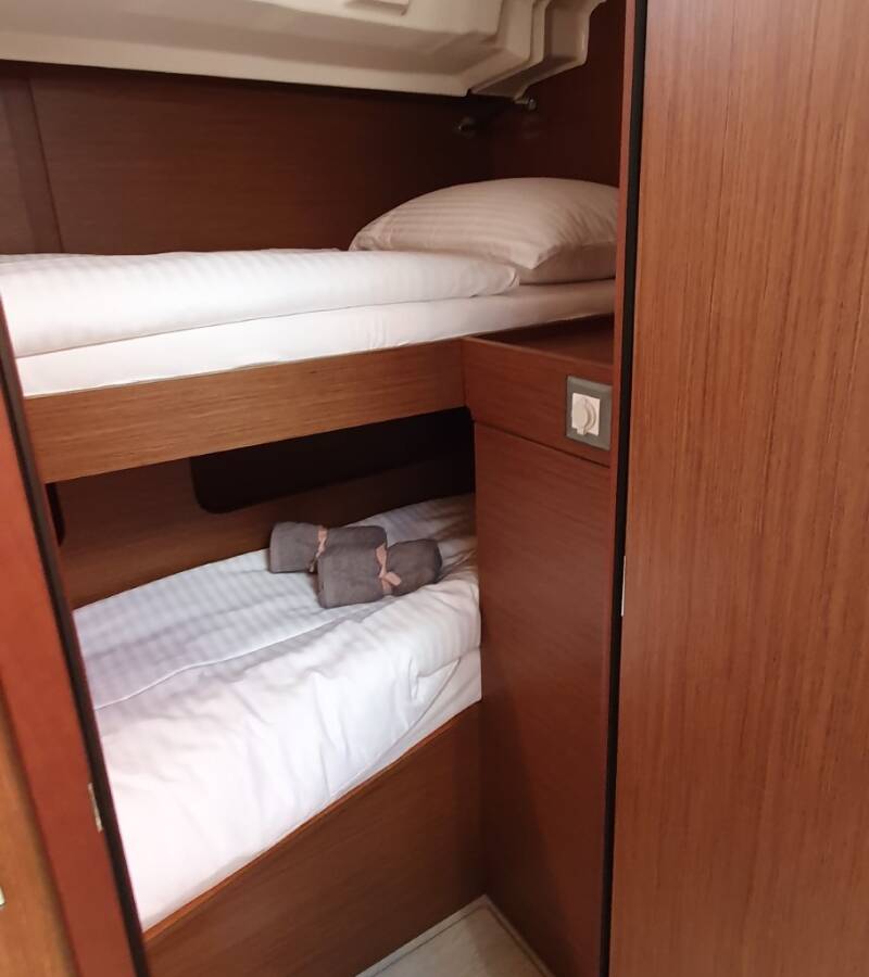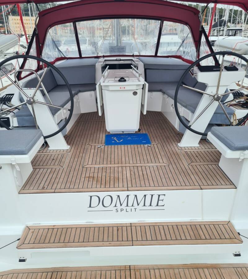 Oceanis 46.1 „Dommie“ jest wyposażony w grot, fok i dodatkowo Daszek bimini, Autopilot, Szprycbuda, Ogrzewanie, Tekowy kokpit, Ploter map GPS - kokpit.