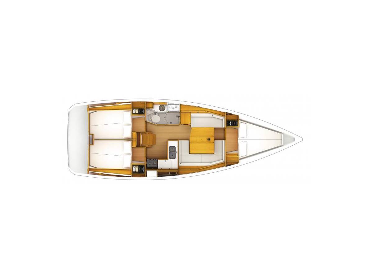 Sun Odyssey 389 „Max“ oferuje niezwykły komfort dzięki m.in.: Ster strumieniowy, Platforma kąpielowa, Toaleta elektryczna.
