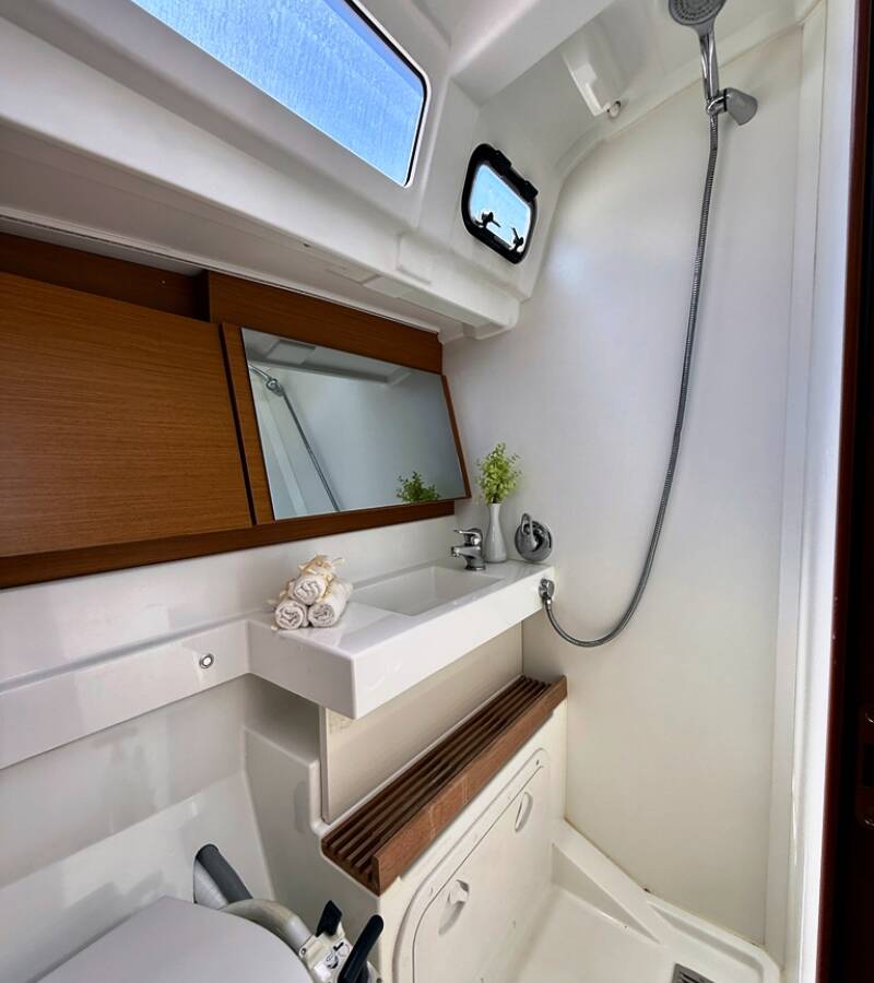 Sun Odyssey 490 „Yada“ jest wyposażony w grot, fok i dodatkowo Daszek bimini, Autopilot, Szprycbuda, Ploter map GPS - kokpit.