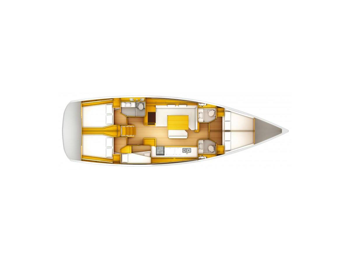 Sun Odyssey 509 „Kaos“ oferuje niezwykły komfort dzięki m.in.: Zamrażarka, Poduszki w kokpicie, Inwerter, Toaleta elektryczna.