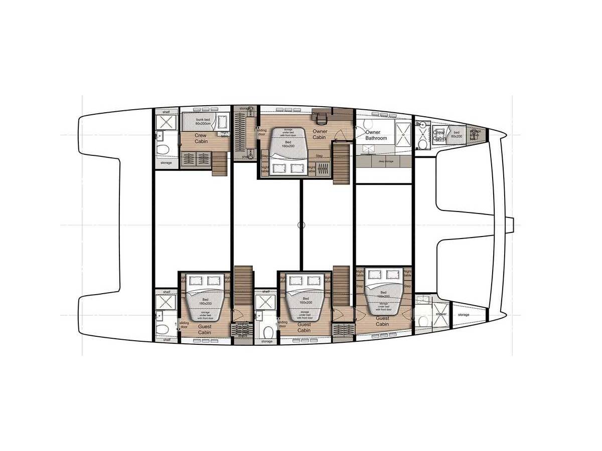 Sunreef 60 „Sea Dreams“ jest wyposażony w grot, fok i dodatkowo Radar, Daszek bimini, Autopilot, Szprycbuda, Ogrzewanie, Tekowy kokpit.