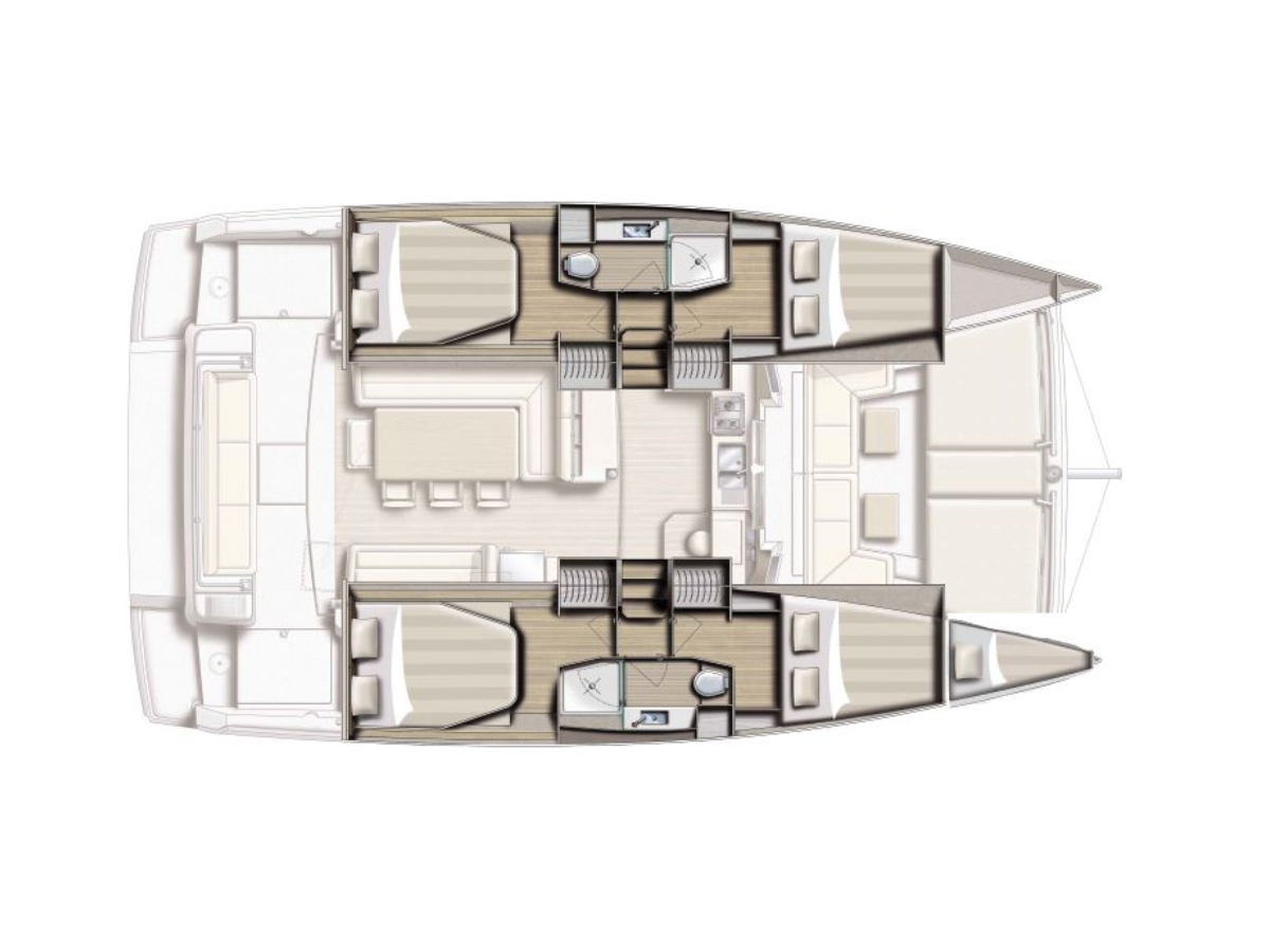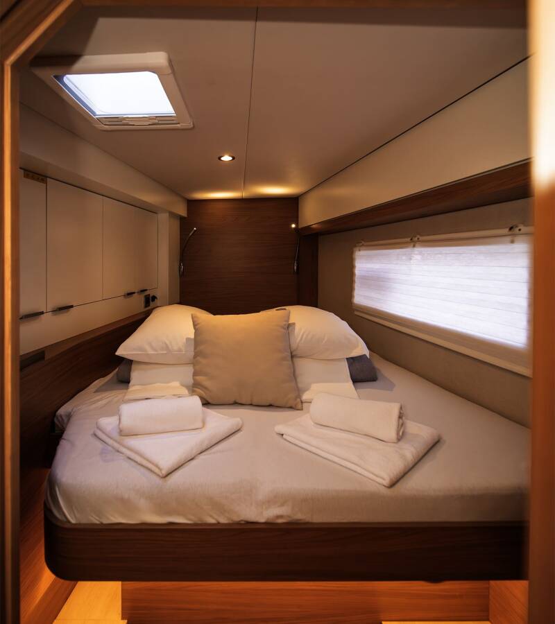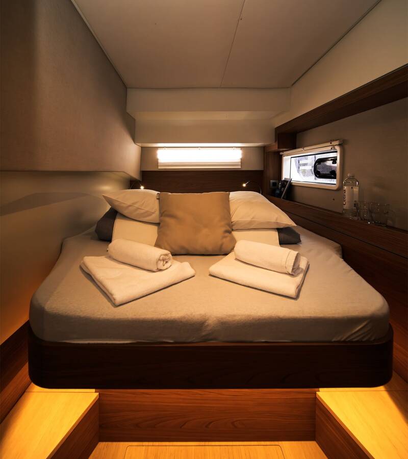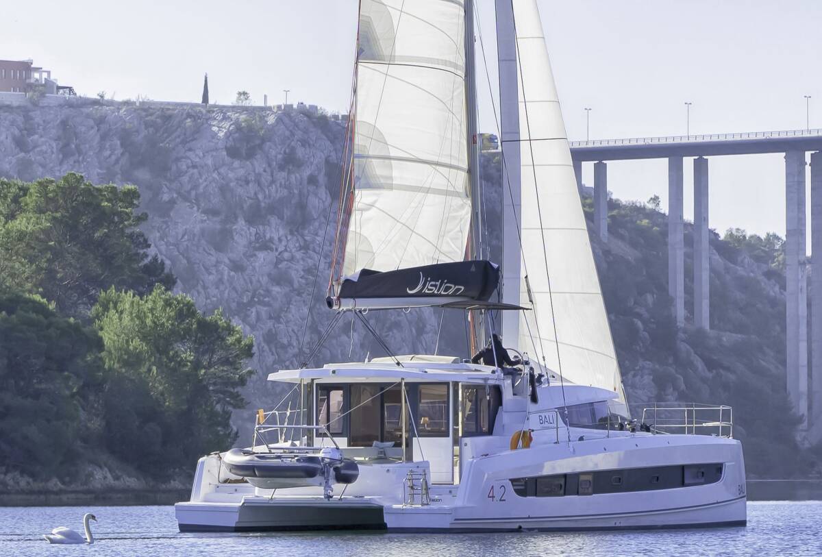 Bali 4.2 „First Spark“ je vybavená hlavným plachtou a genovou plachtou, ako aj Autopilot, Sprayhood, GPS mapový plotter - kokpit.