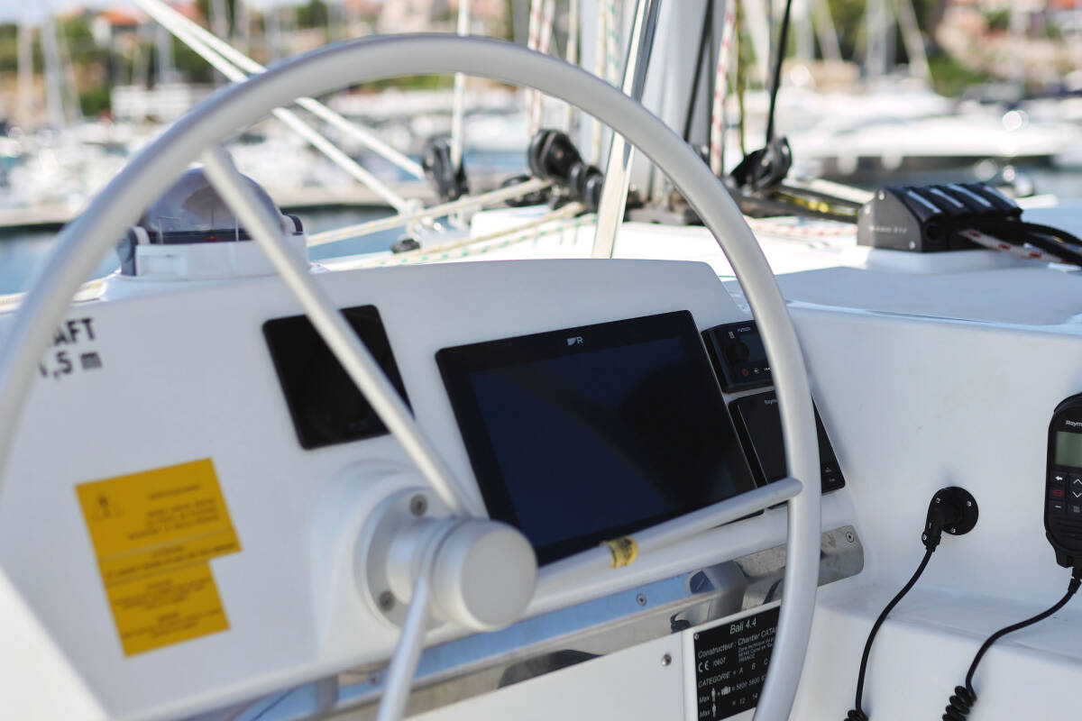 Bali 4.4 „Algol“ je vybavená hlavným plachtou a genovou plachtou, ako aj Autopilot, Kúrenie, GPS mapový plotter - kokpit.