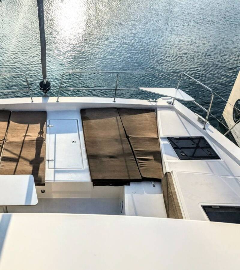 Bali 4.4 „CURRENT BREAK“ je vybavená hlavným plachtou a genovou plachtou, ako aj Bimini, Autopilot.