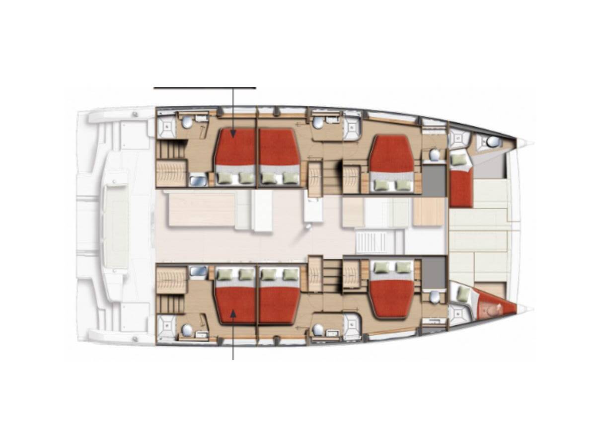Bali 5.2 „Kos 52.CAT2“ je vybavená hlavným plachtou a genovou plachtou, ako aj Bimini, Autopilot, Sprayhood, Kúrenie, GPS mapový plotter - kokpit.