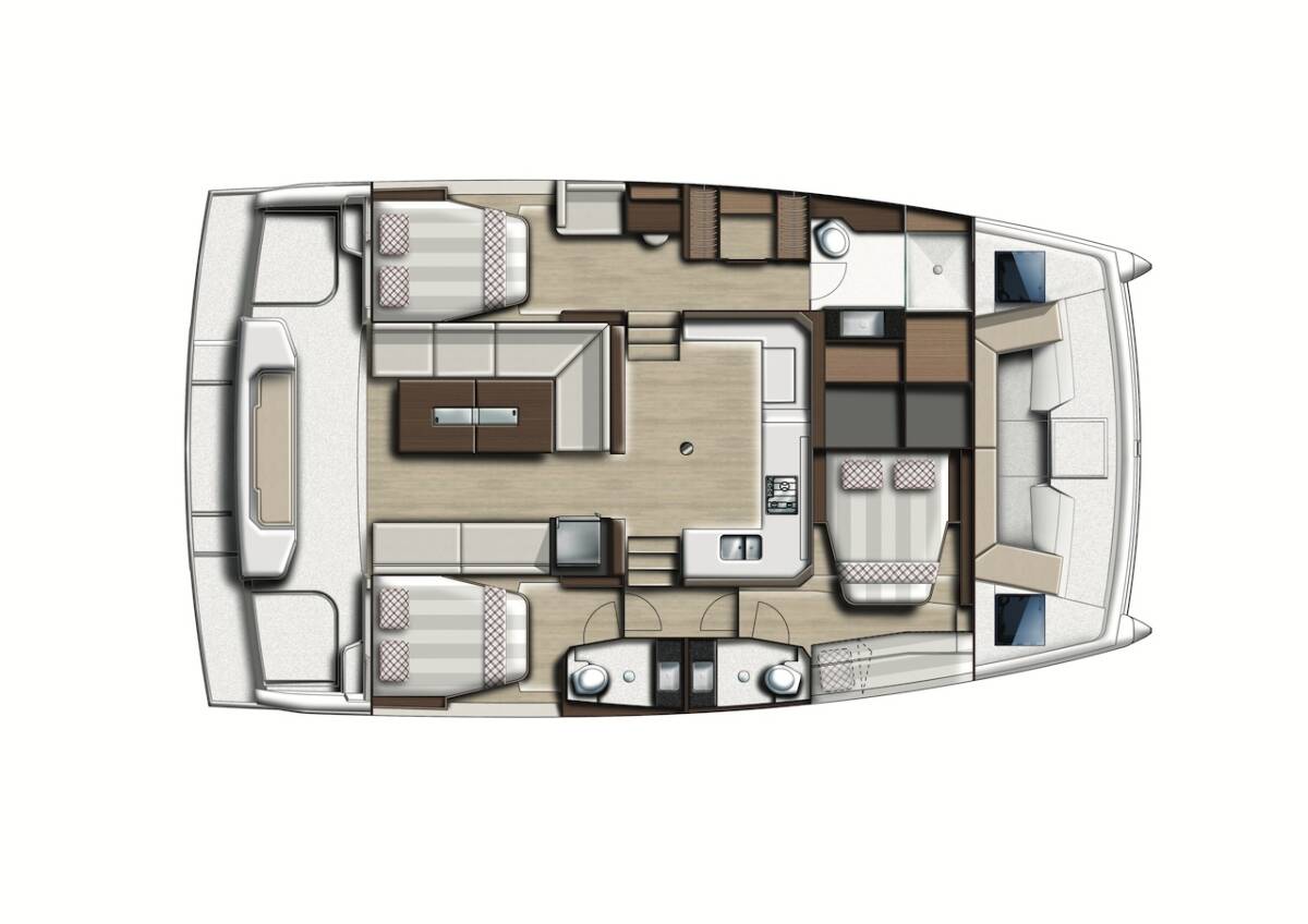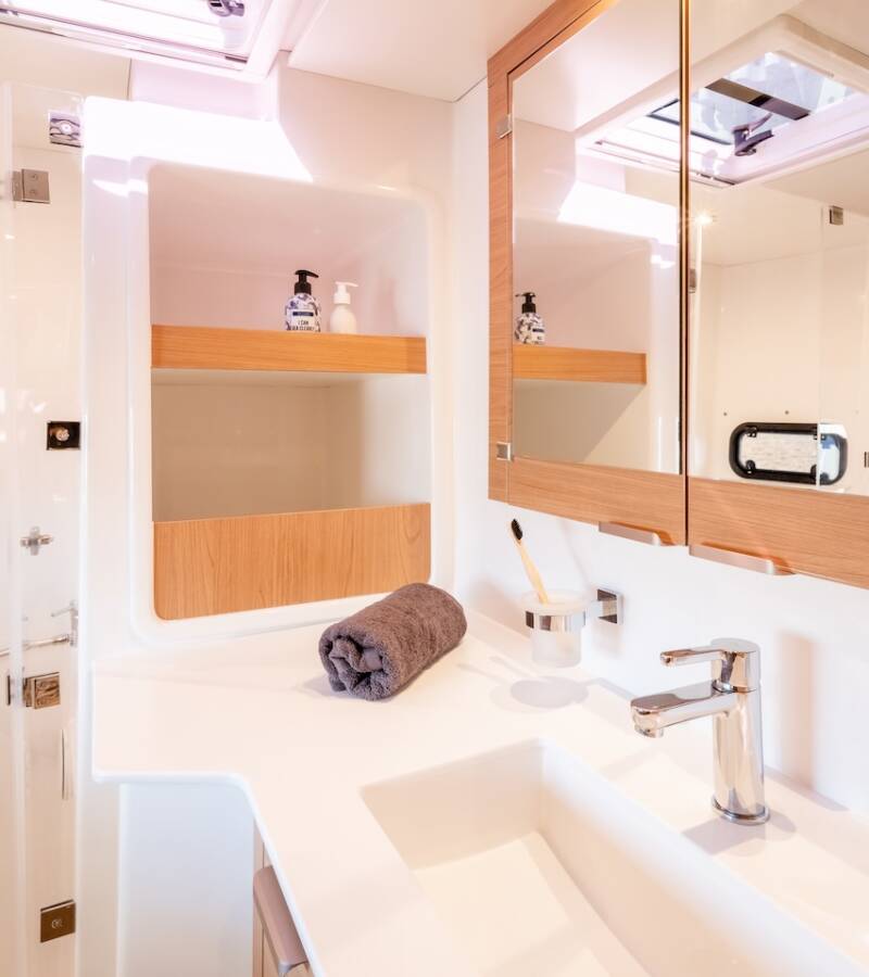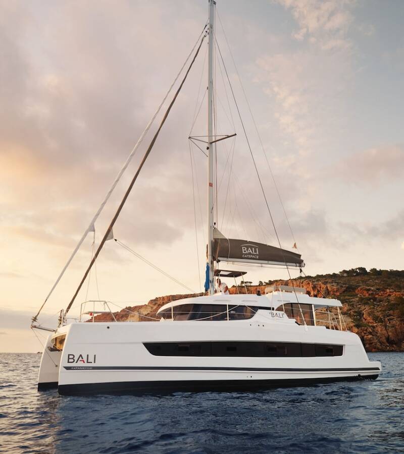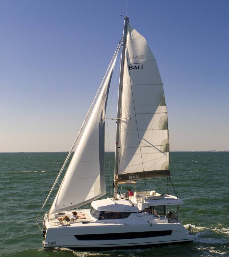 Bali Catspace OW „Jolene“ je vybavená hlavným plachtou a genovou plachtou, ako aj Bimini, Autopilot.