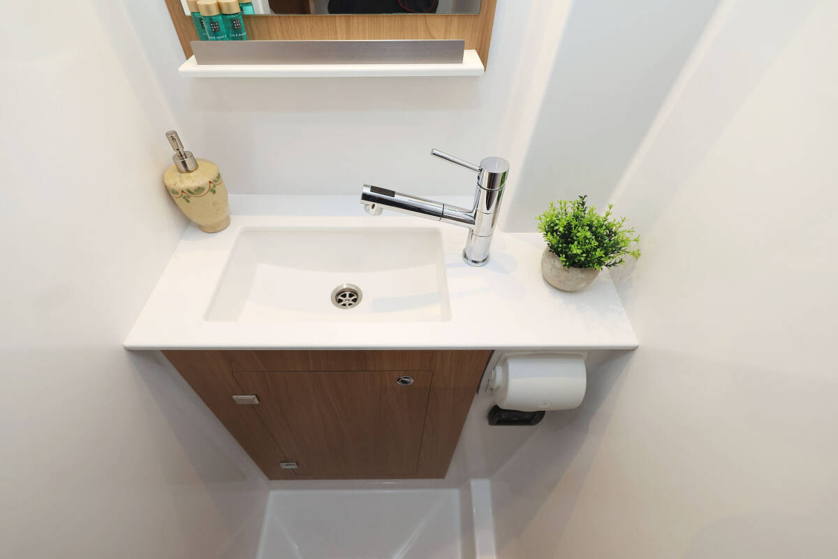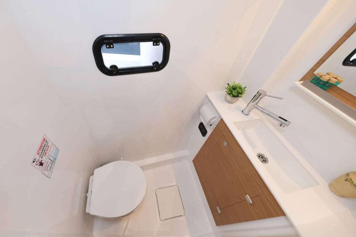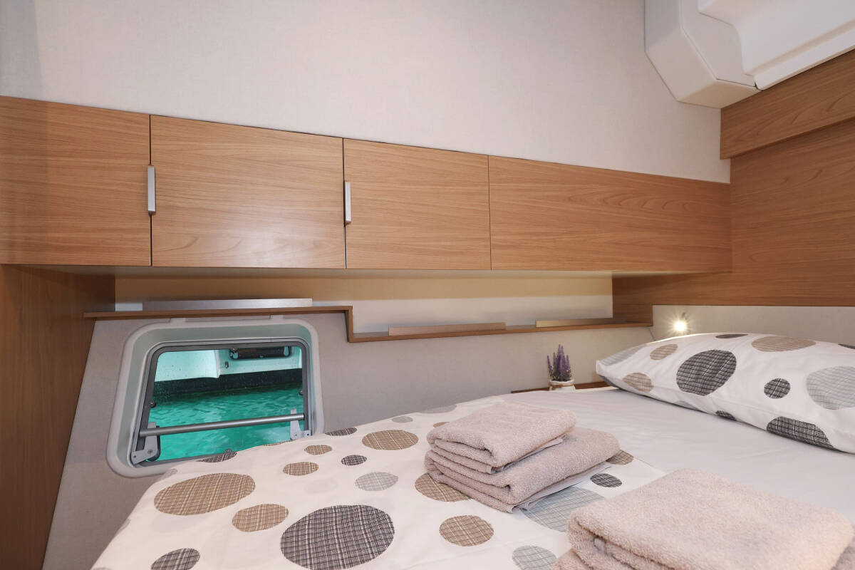 Bali Catspace „Sapphire“ ponúka špeciálny komfort s nasledujúcimi vlastnosťami vybavenia: Mraznička, Vankúše do kokpitu, Kúpacia platforma, Invertor, Elektrické WC, Solárne panely.