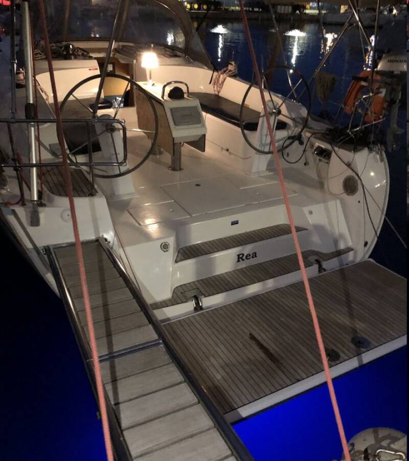 Plachetnica Bavaria Cruiser 46 „Rea“, postavená v roku 2015, kotví v Athens, Alimos marina - Grécko. Jachta má 4 kajút, môže ubytovať 8 + 1 osôb a disponuje 3 toaletami/sprchami.