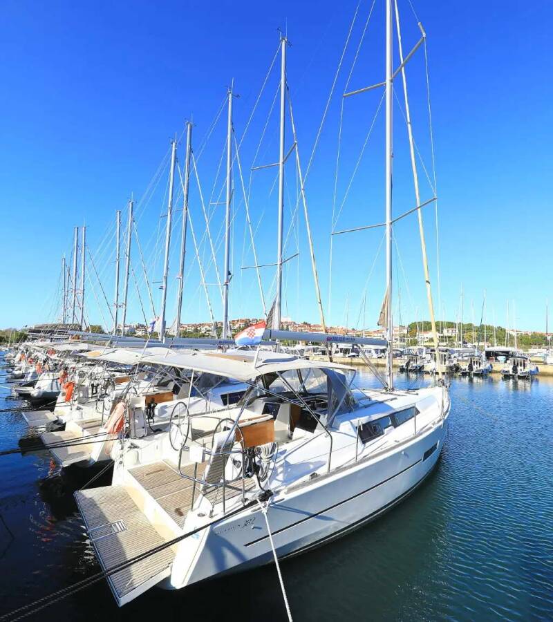 Dufour 382 GL „Sunset“ je vybavená hlavným plachtou a genovou plachtou, ako aj Bimini, Autopilot, Sprayhood, GPS mapový plotter - kokpit.