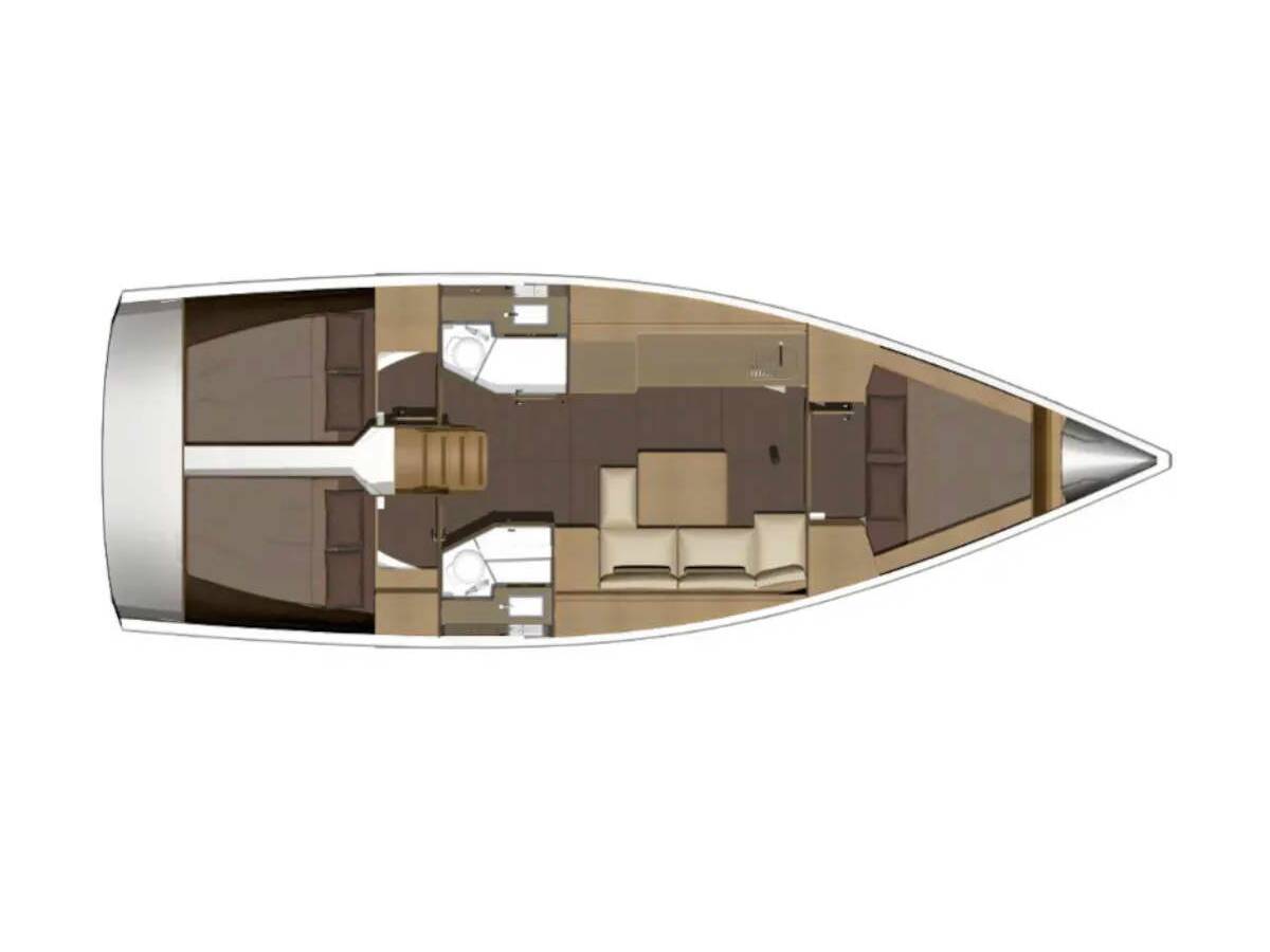 Dufour 382 GL „Sunset“ ponúka špeciálny komfort s nasledujúcimi vlastnosťami vybavenia: Bow thruster, Vankúše do kokpitu, Elektrické WC.